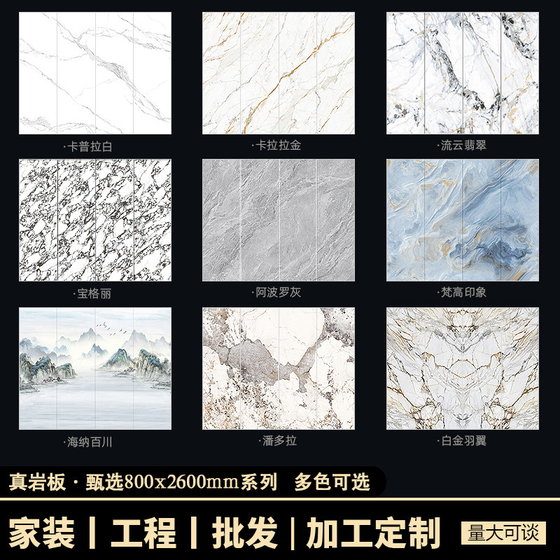 佳熠已建立了丰富的产品体系:产品涵盖了岩板、通体大理石瓷砖、瓷抛砖、大板瓷砖、中板瓷砖、自由连纹大理石瓷砖、花岗岩瓷砖、瓷片等品类;更涵盖了 400X800mm、600X600mm、800X800mm...