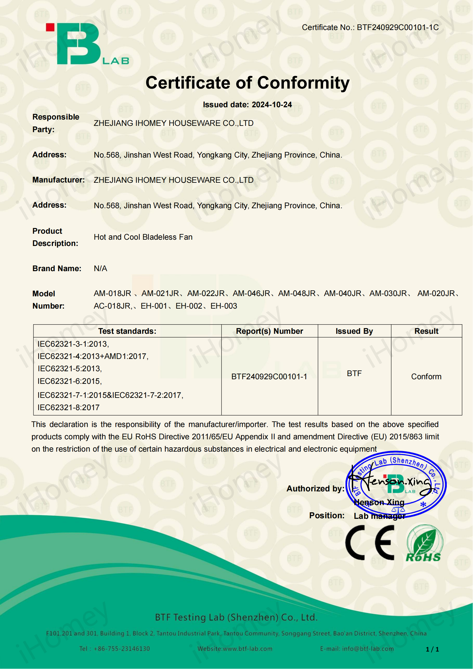 拥有RoHS认证