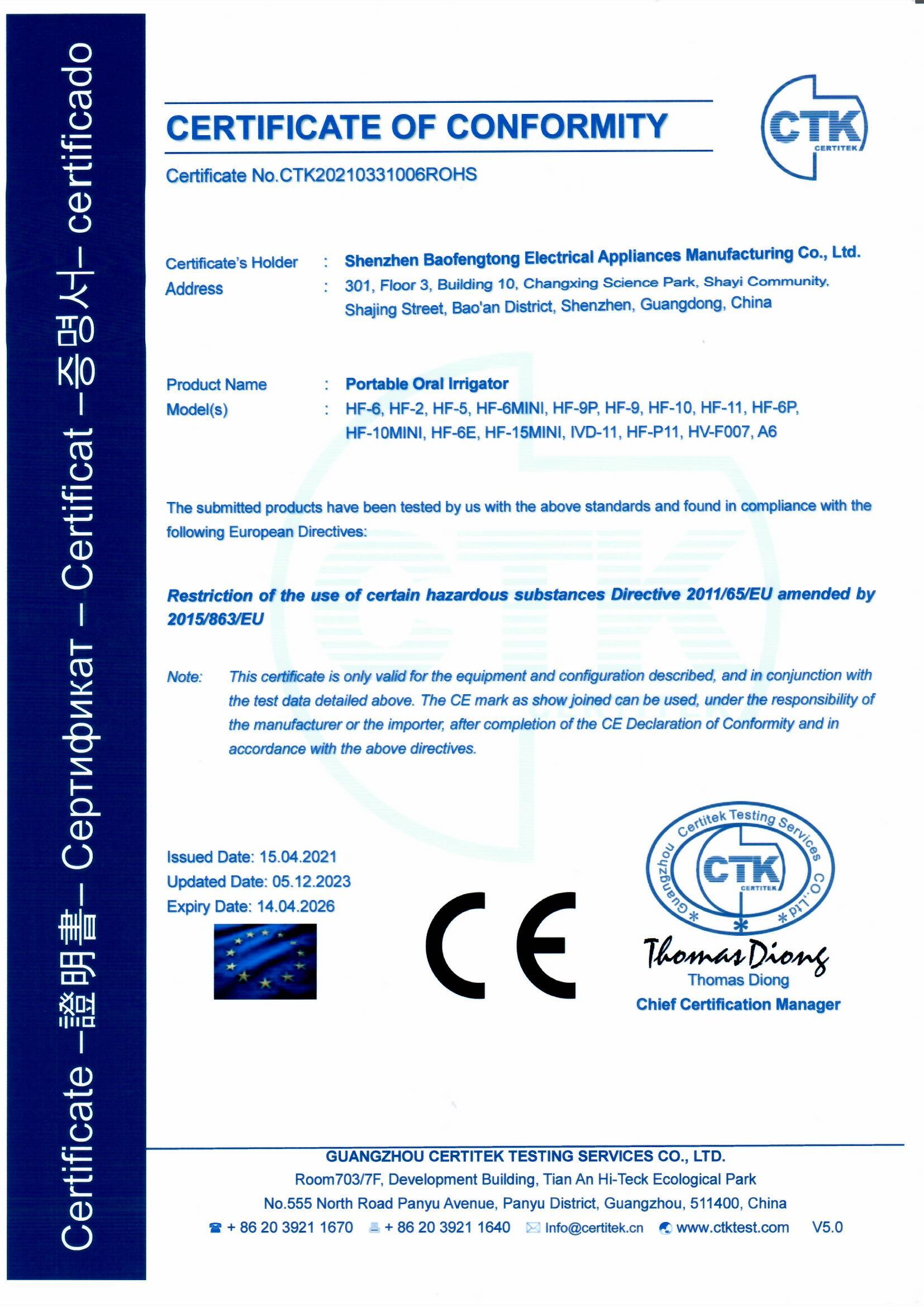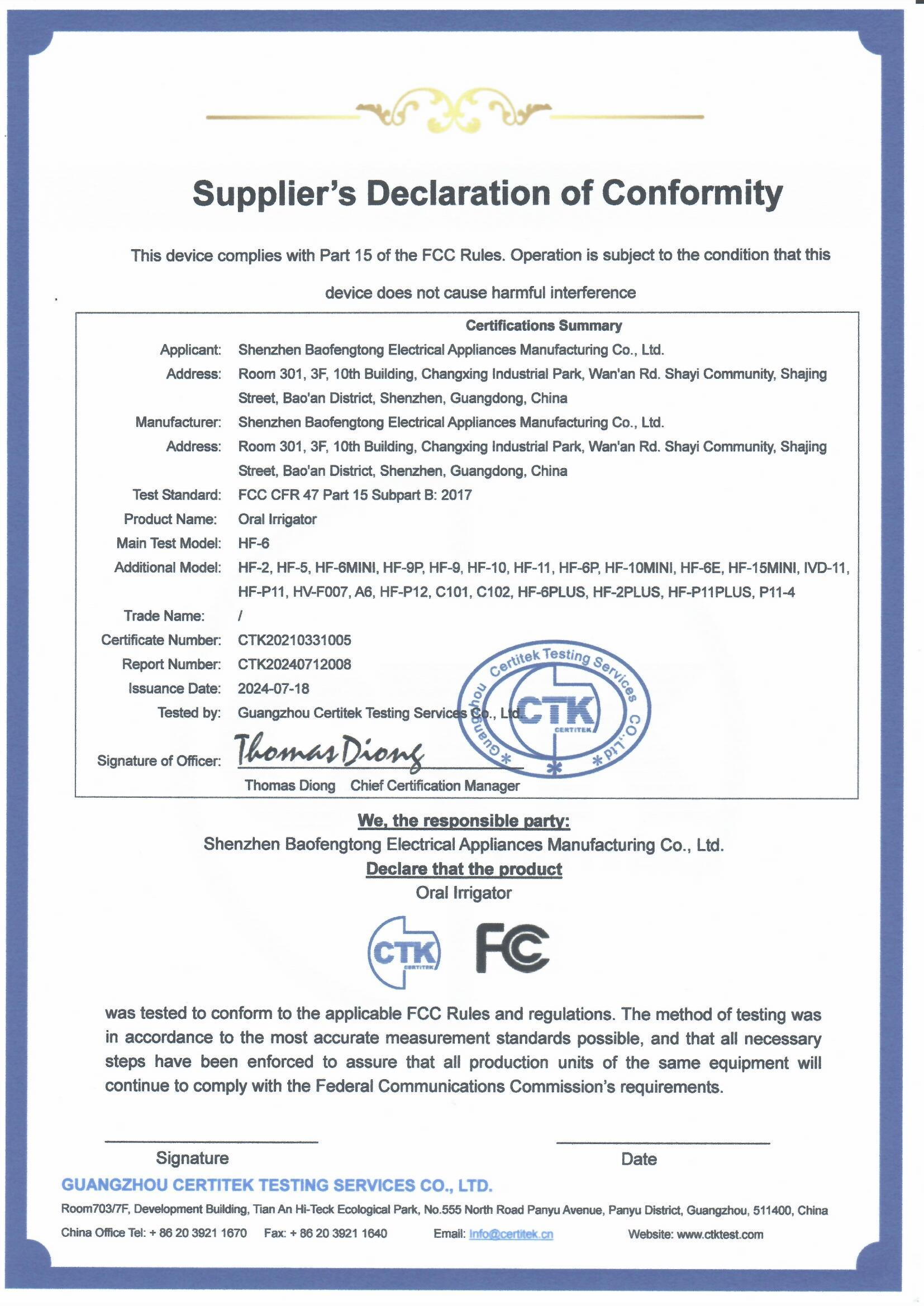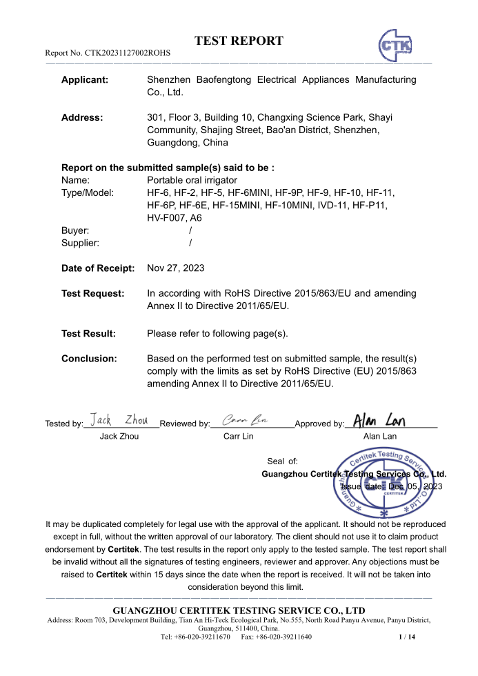 深圳市宝丰通电器制造有限公司是一家专业的口腔保健产品的生产商,致力于口腔冲洗器产品的研发和生产。我们的产品远销海外,越来越多的受到日本、美国、西班牙、德国、俄罗斯和欧洲其他国家消费者的亲睐。作为一个专...