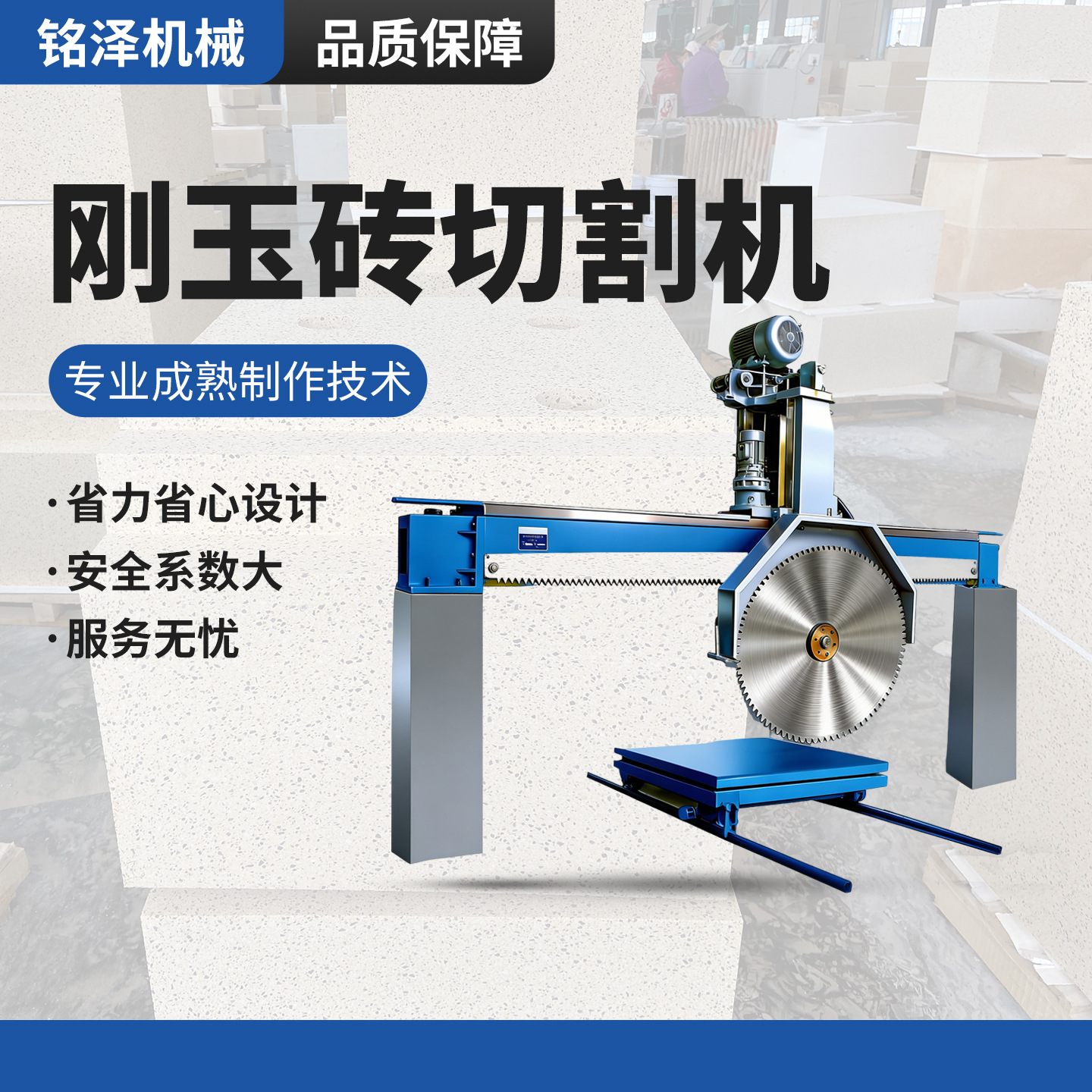 郑州铭泽机械有限公司,是一家以生产切割机械为主,集科研、生产,销售为一体的大型企业。公司自成立以来,始终坚持以视质量为生命,奉用户为上帝的经营理念,并遵循对每一台产品负责的指导方针,竭诚为用户服务,坚...