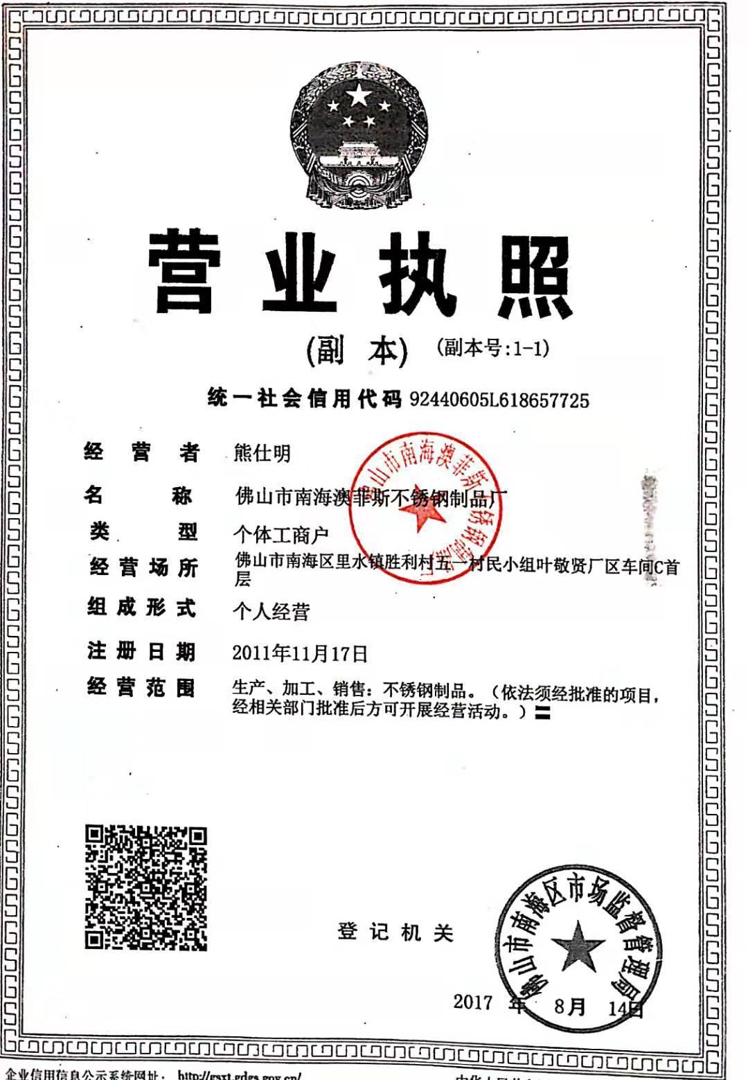 佛山市南海澳菲斯不锈钢制品厂