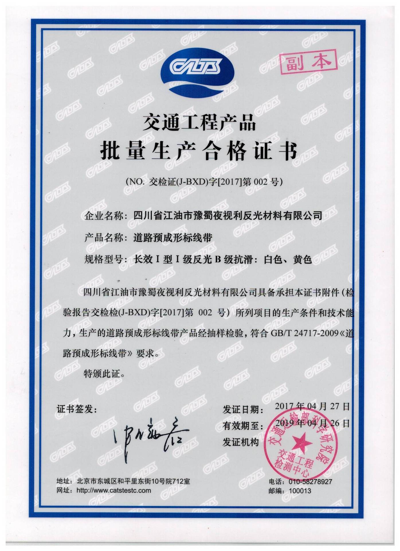 四川省江油市豫蜀夜视利反光材料有限公司