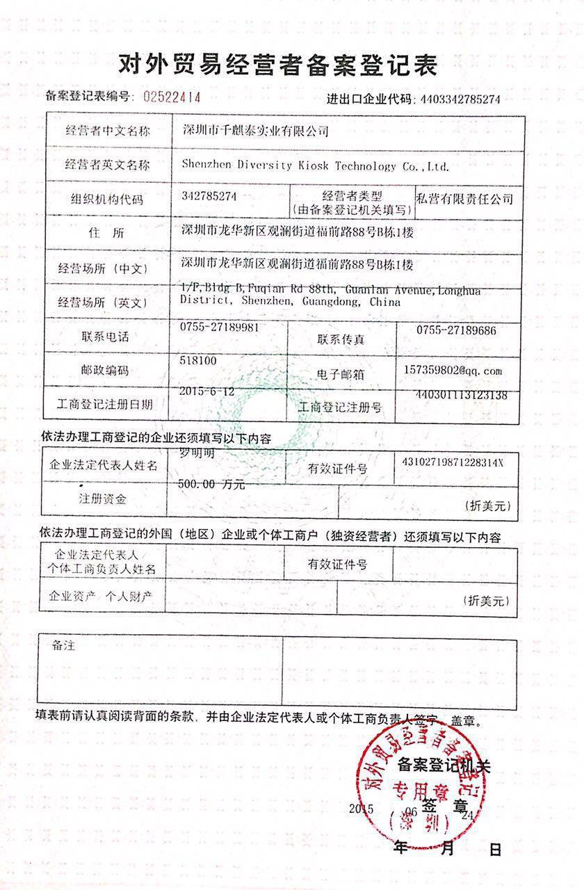 深圳市千麒泰实业有限公司是一家自助服务终端开发设计和制造商,以及走在自助服务终端行业前沿的全球化公司。千麒泰的团队在自助终端的设计和制造方面拥有10多年的经验,已在这里处理了800多种型号。我们的专长...