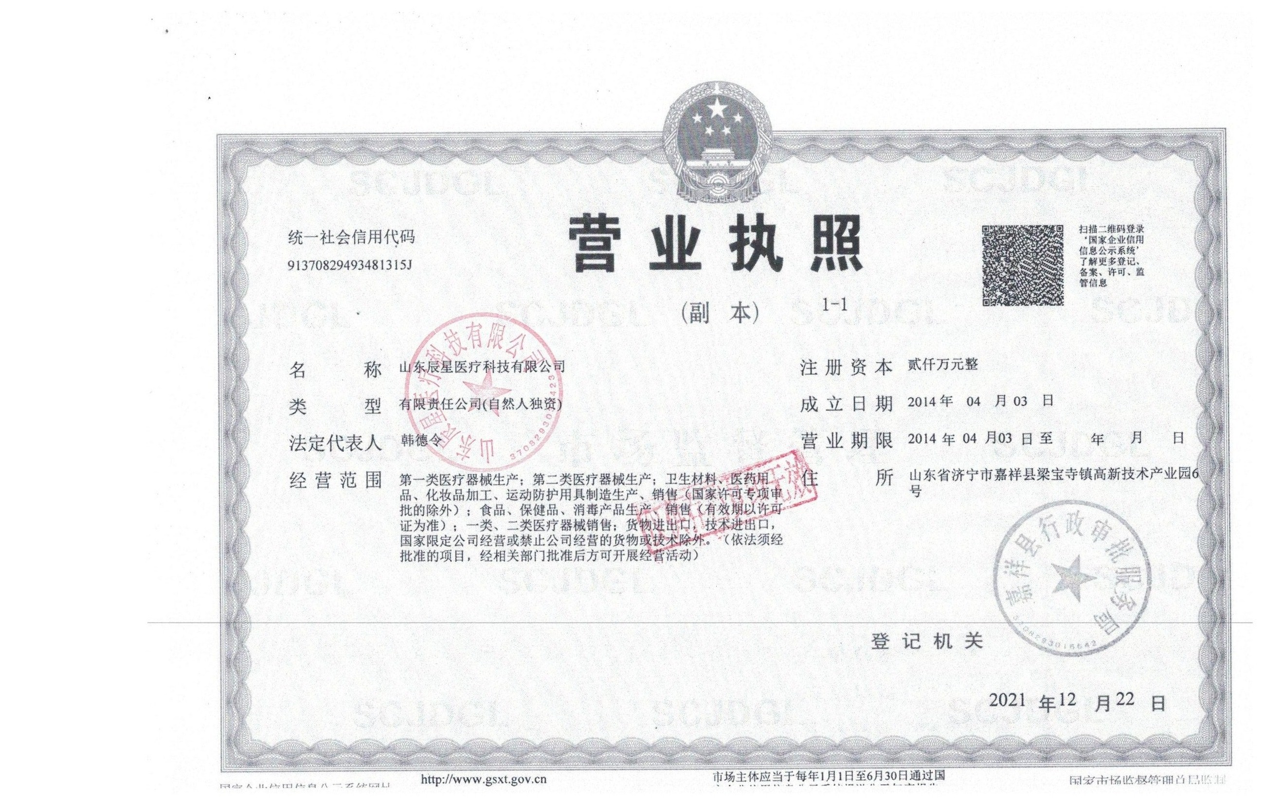 山东辰星医疗科技有限公司