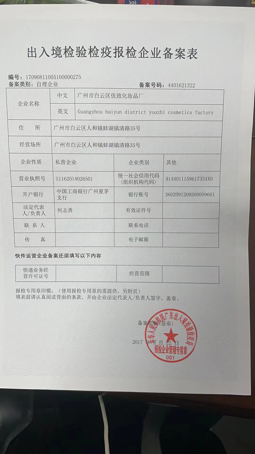 广州市白云区优致化妆品厂