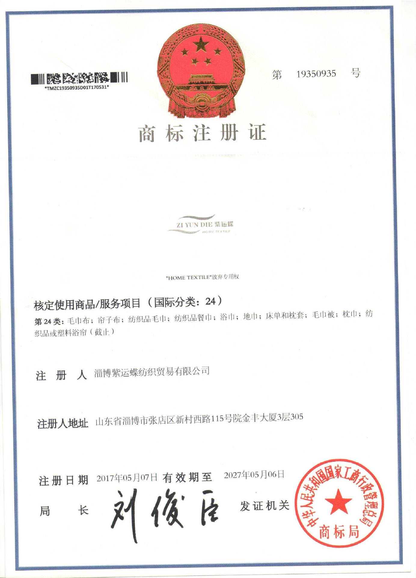 淄博紫运蝶家居服饰有限公司