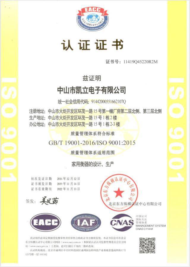 中山市凯立电子是一家专业从事重力测量技术的开发及产品设计、生产和销售于一体的高科技型企业,凯立拥有超过15年电子秤的经验、自主研发团队、先进的技术设备和科学的经营管理理念,主营人体秤、脂肪秤、厨房秤、...
