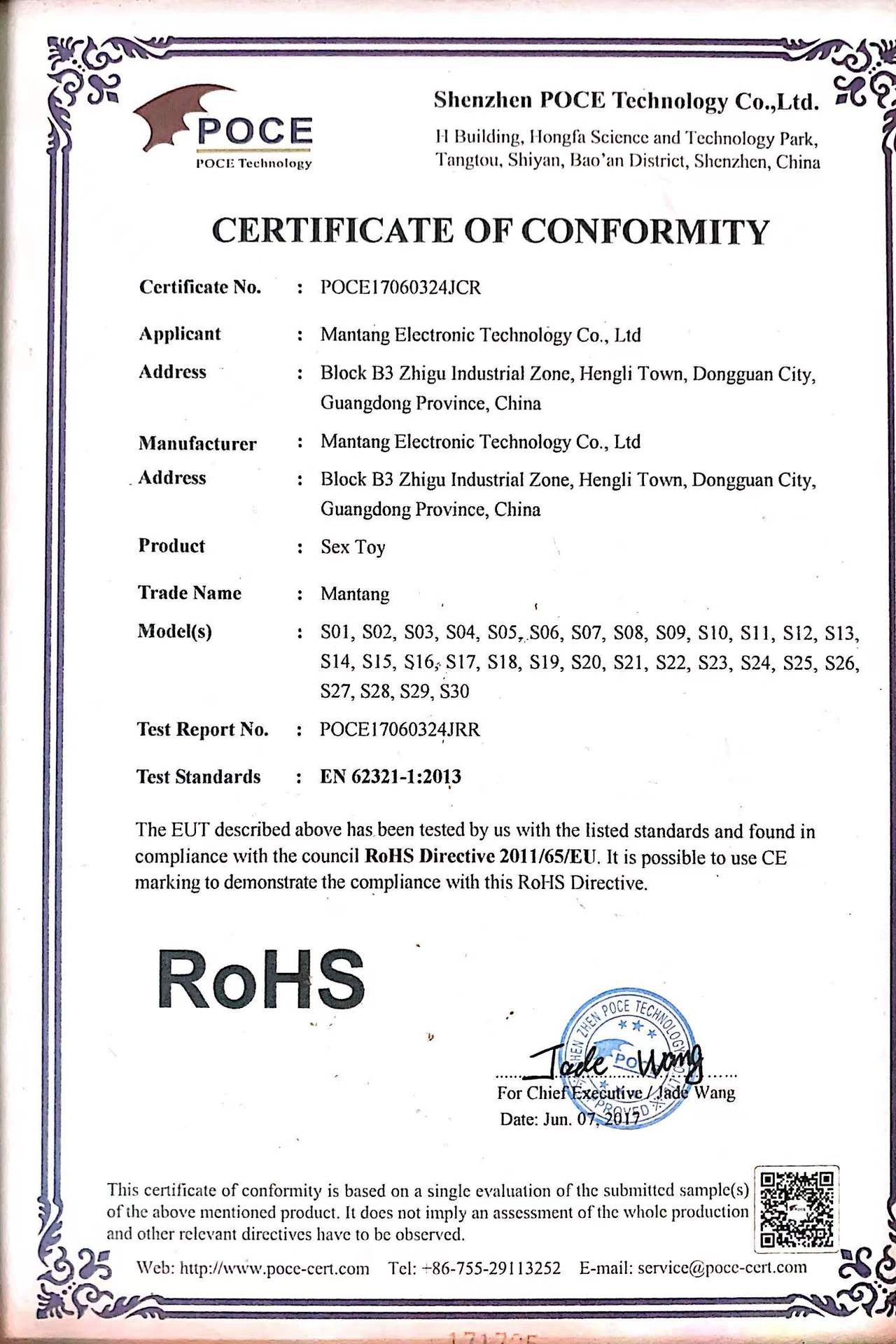 拥有RoHS认证