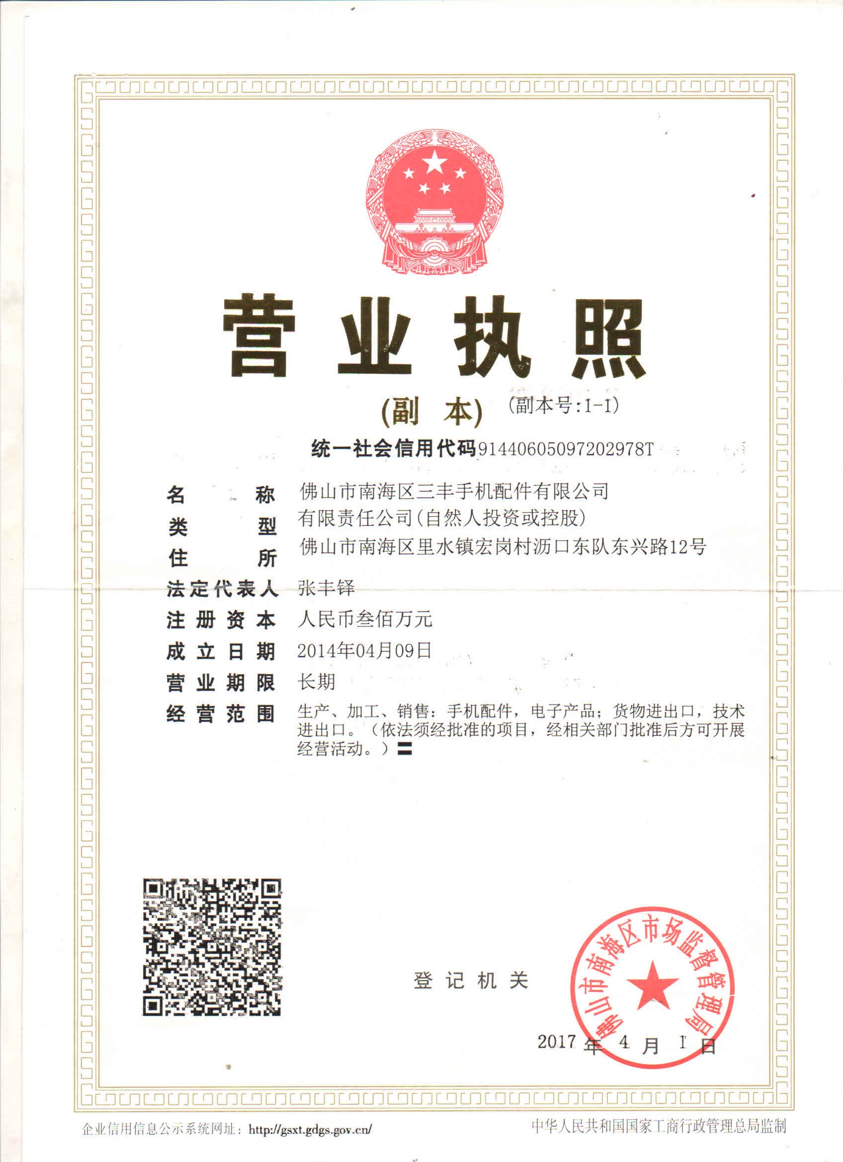 佛山市南海区三丰手机配件有限公司