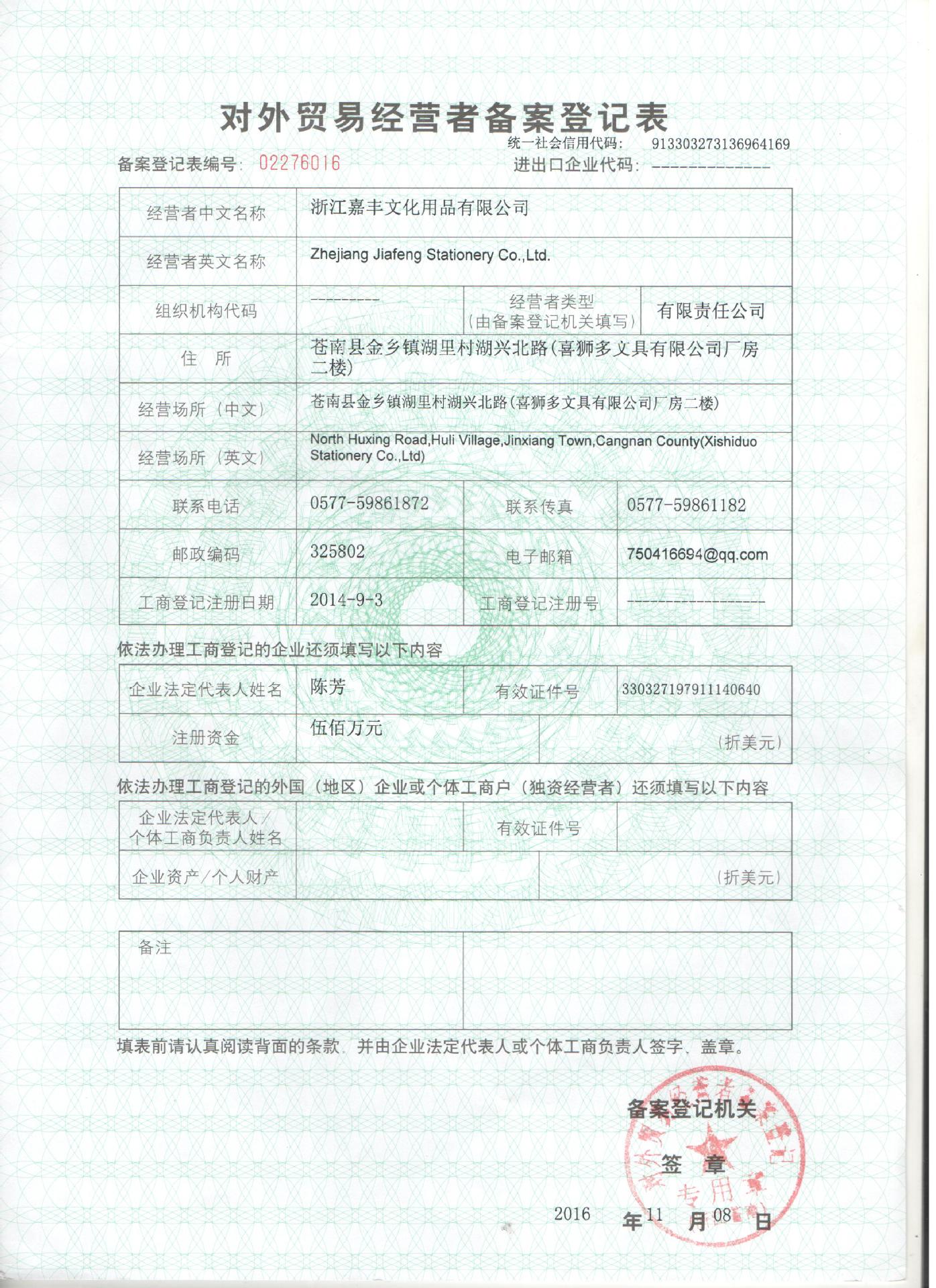 浙江嘉丰文化用品有限公司