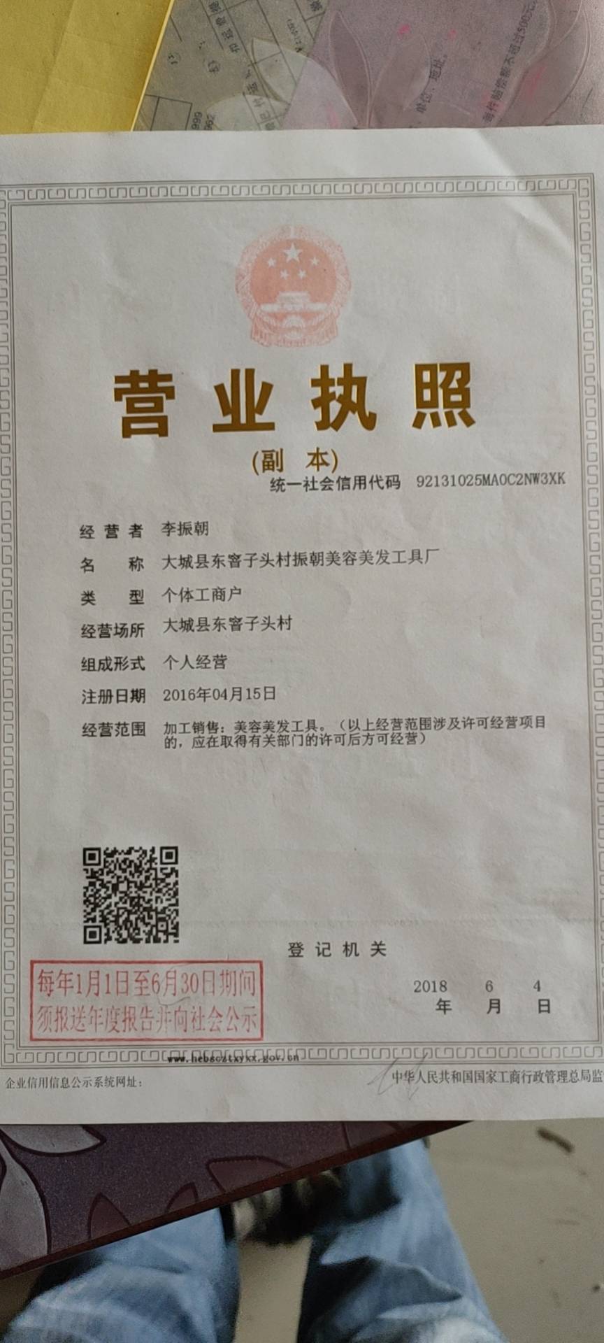 大城县东窨子头村振朝美容美发工具厂