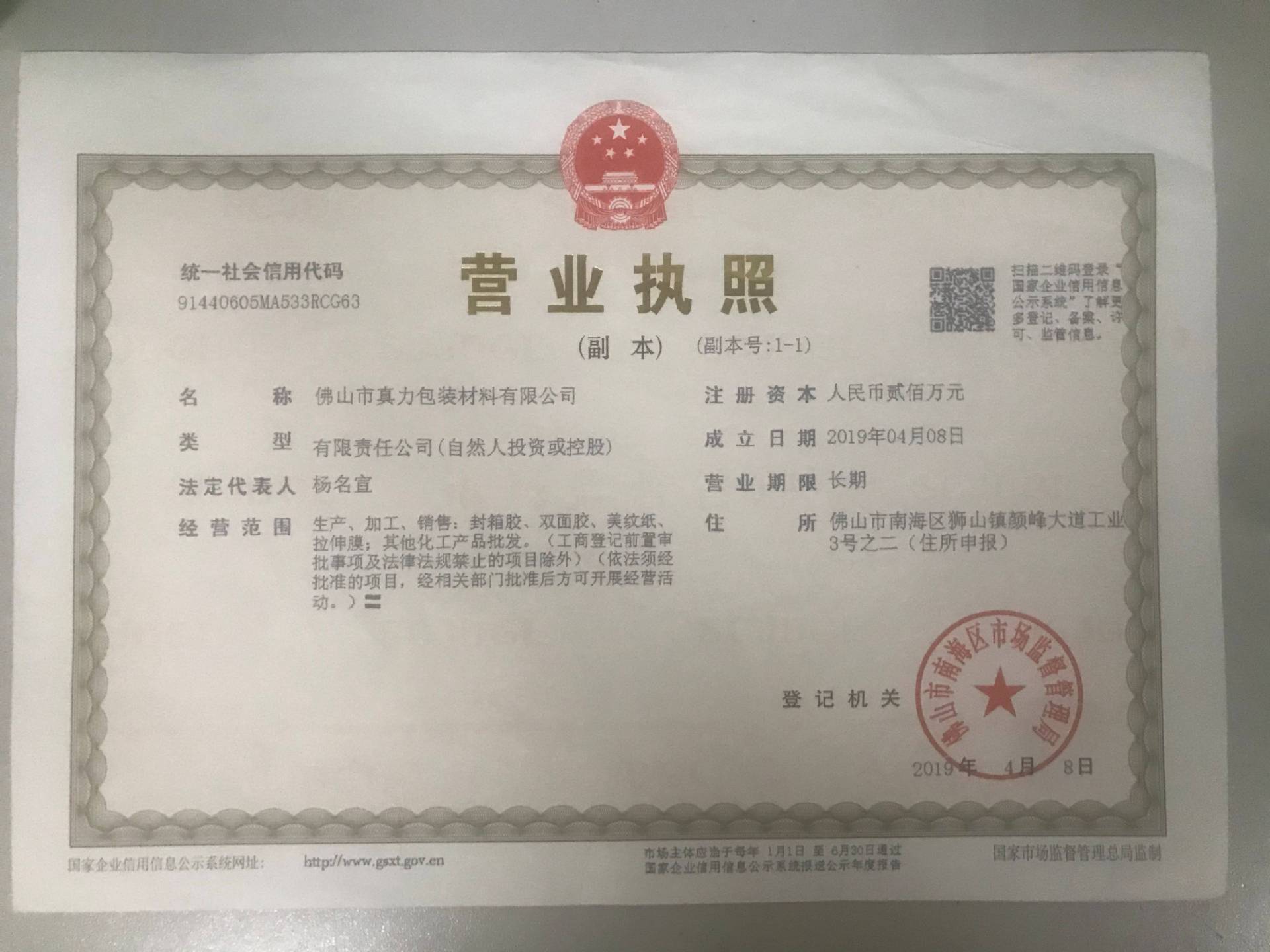 佛山市真力包装材料有限公司坐落在“中国制造业名城”广东佛山,拥有超一万平方厂区,是一家经国家相关部门批准注册的集研发、生产、销售包装材料一体的一般纳税人企业。经过二十余年的发展,已形成种类齐全,质...