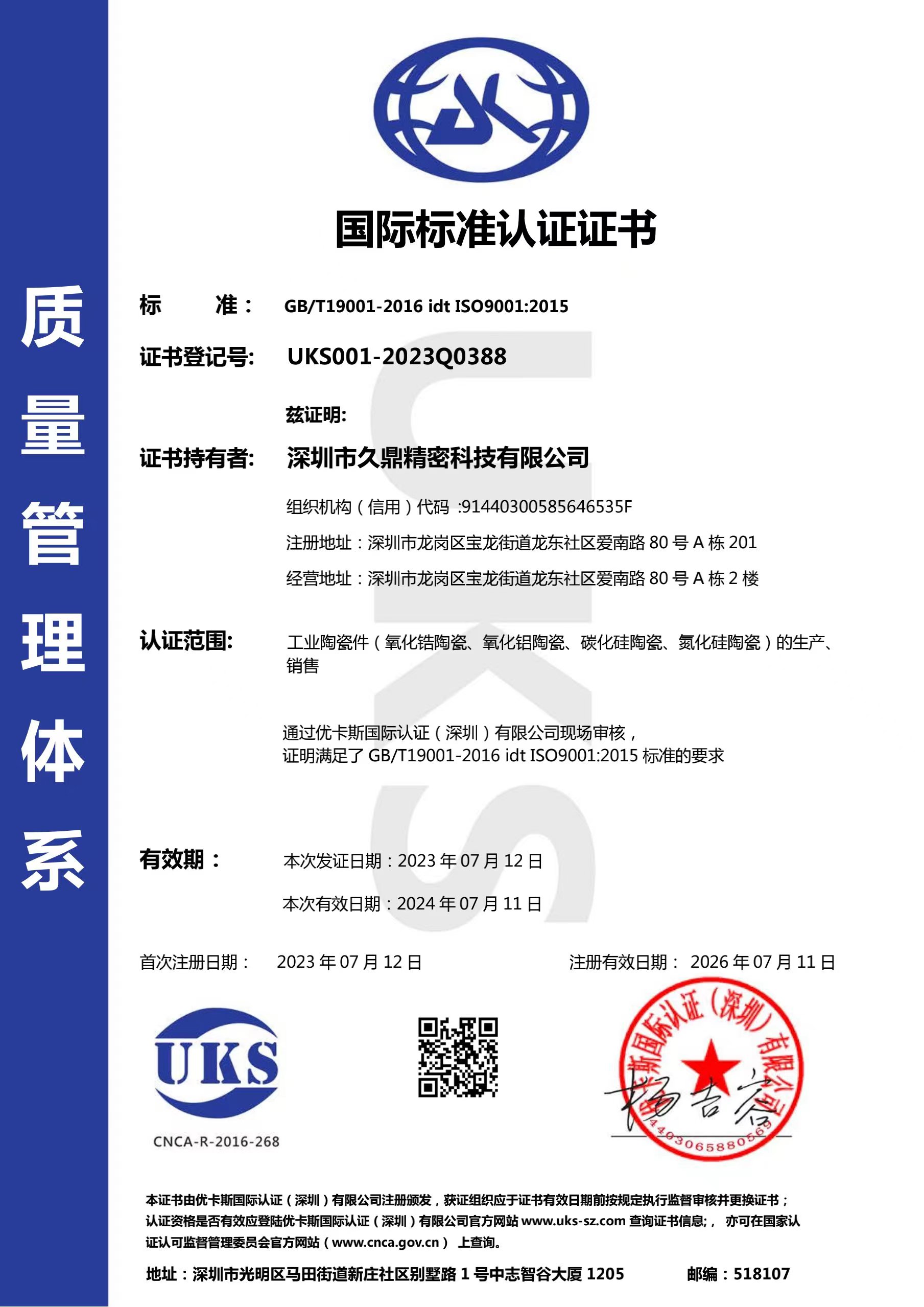 深圳市久鼎精密科技有限公司成立于2011年11月,位于广东省深圳市龙岗,我司是一家专业从事于,陶瓷轴承、氧化铝、氧化锆、碳化硅、氮化硅陶瓷解构件,生产销售的高新技术企业。深圳市久鼎精密科技有限公司在非...