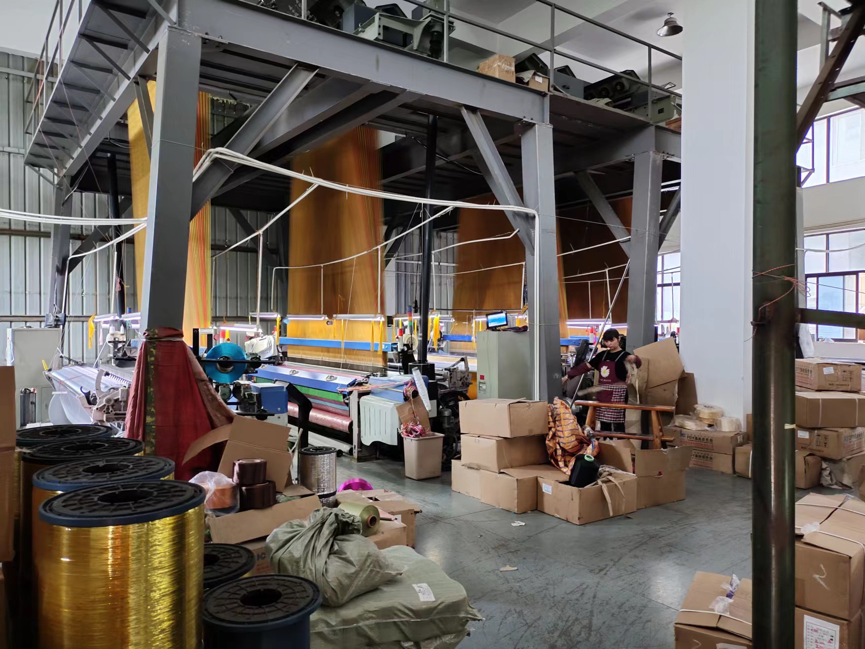 海宁市许村镇景树银宝纺织厂 坐落于浙江省海宁市许村镇 全公司现有大小提花机50台 主营黏胶纺 尼丝纺 涤丝纺
