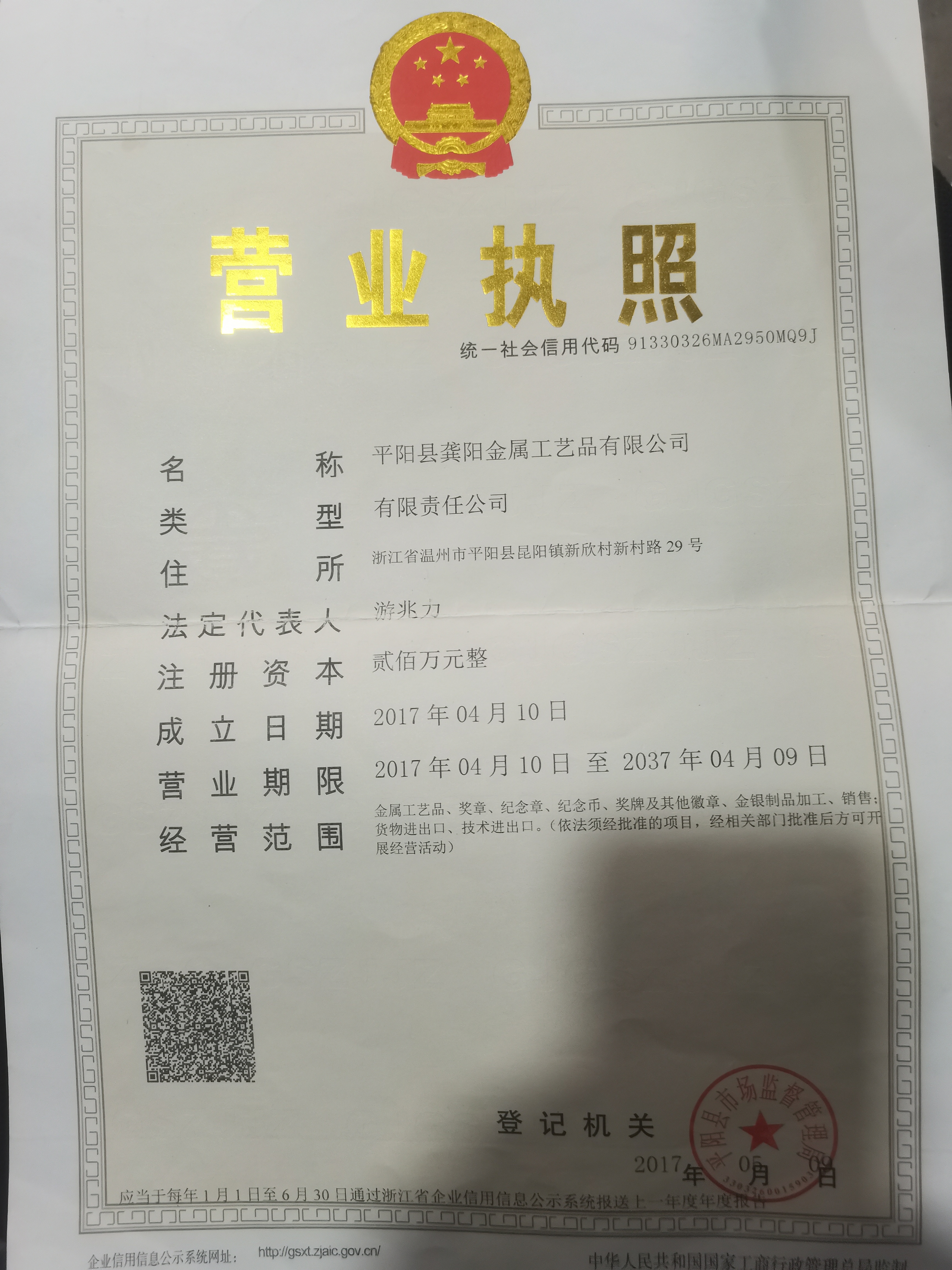 平阳县龚阳金属工艺品有限公司