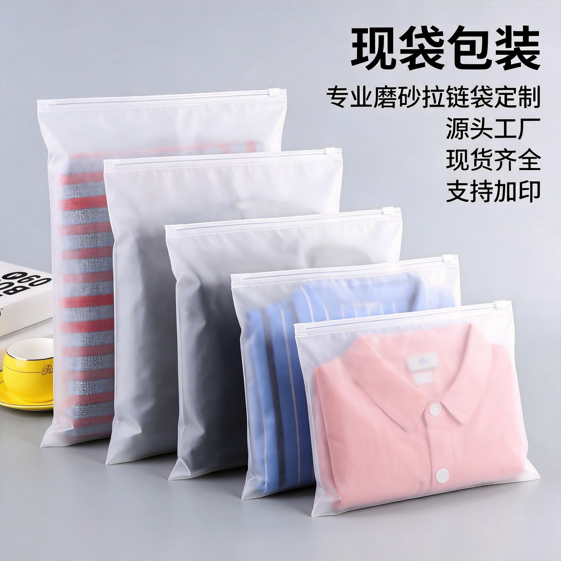 温州现袋包装有限公司主营服装拉链袋、环保袋、PE透明袋、阴阳袋、EVA服装袋等产品专业生产加工的公司,可为客户提供灵活的合作方式,可承接来样定制,也可为客户开发设计。现袋始终坚持“用户至上,以质量求生...