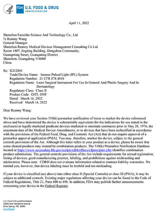 深圳市范丝哲科技有限公司成立于2015年,是一家专注于IPL脱毛仪,等离子美容仪,洁面仪, 生发梳等电子产品的研发,生产,销售的高科技 企业。目前所有产品已通过FDA美国认证及国内二类医疗器械认证。公...