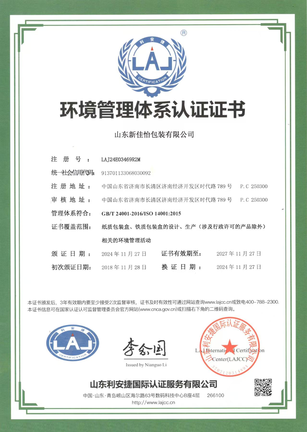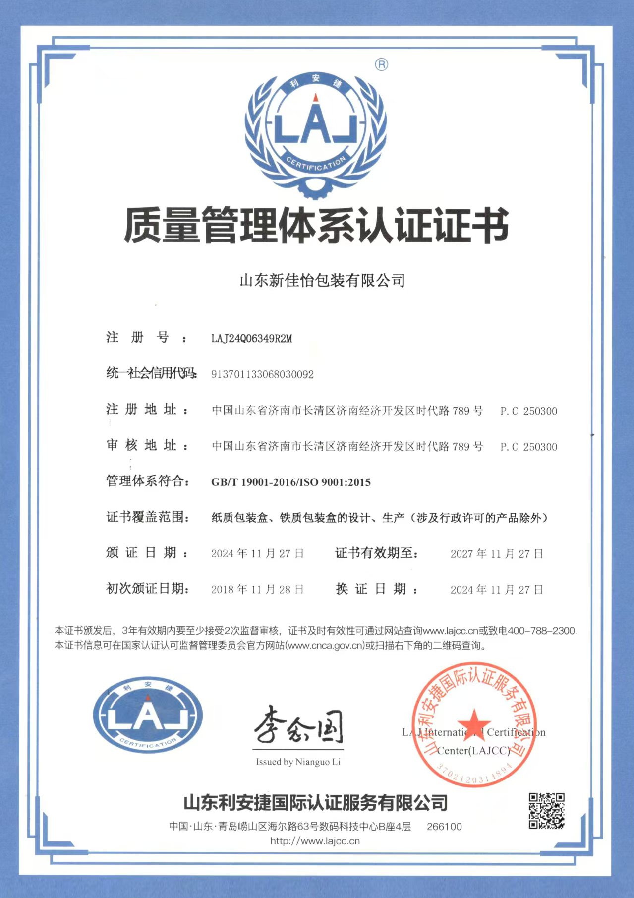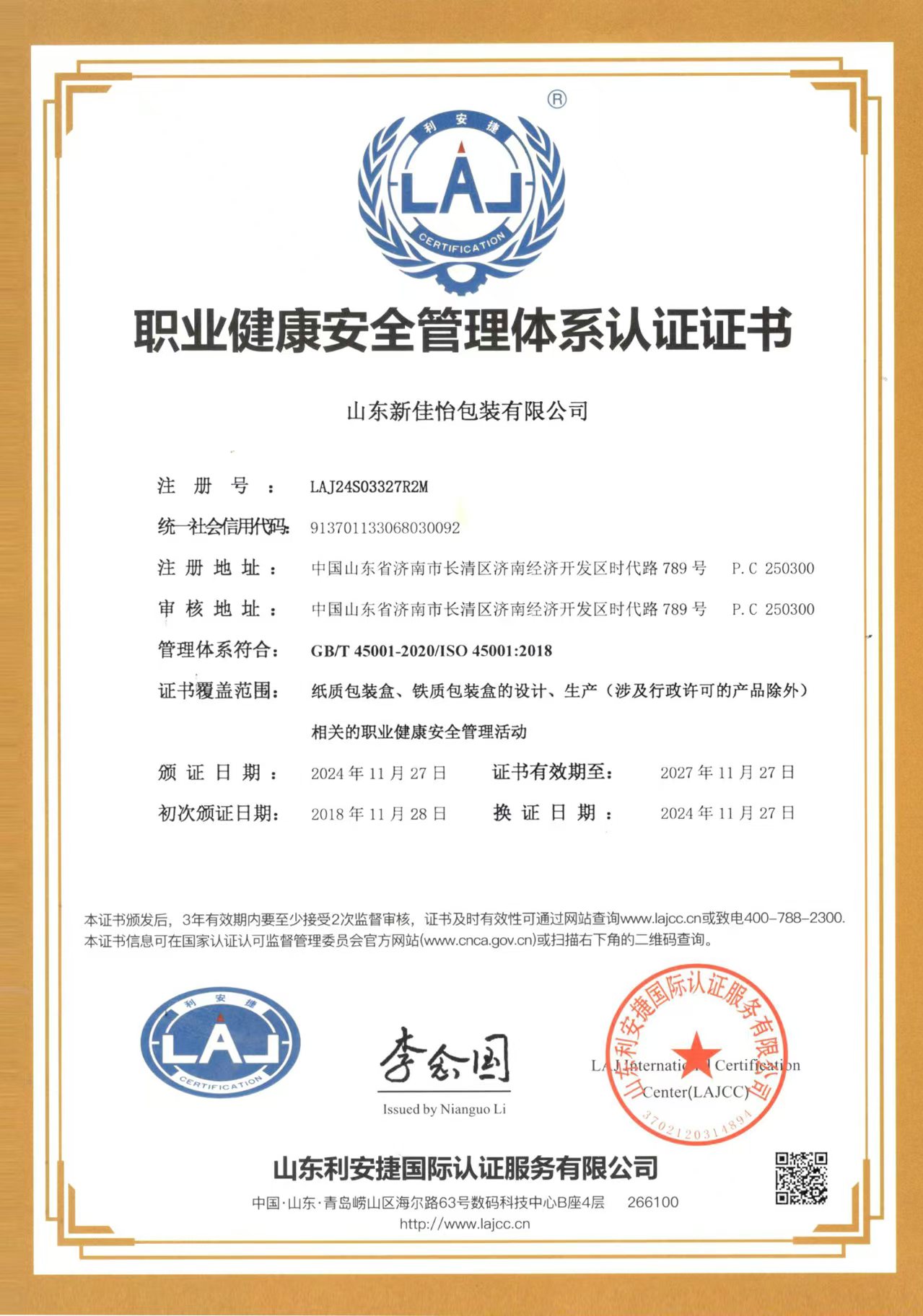 山东新佳怡包装有限公司座落在济南市长清区时代路789号,公司注册资金5000万元人民币,占地面积26635平方米,建筑面积40000平方米,现有职工350余人。主要经营项目:金属包装容器及材料制造;纸...