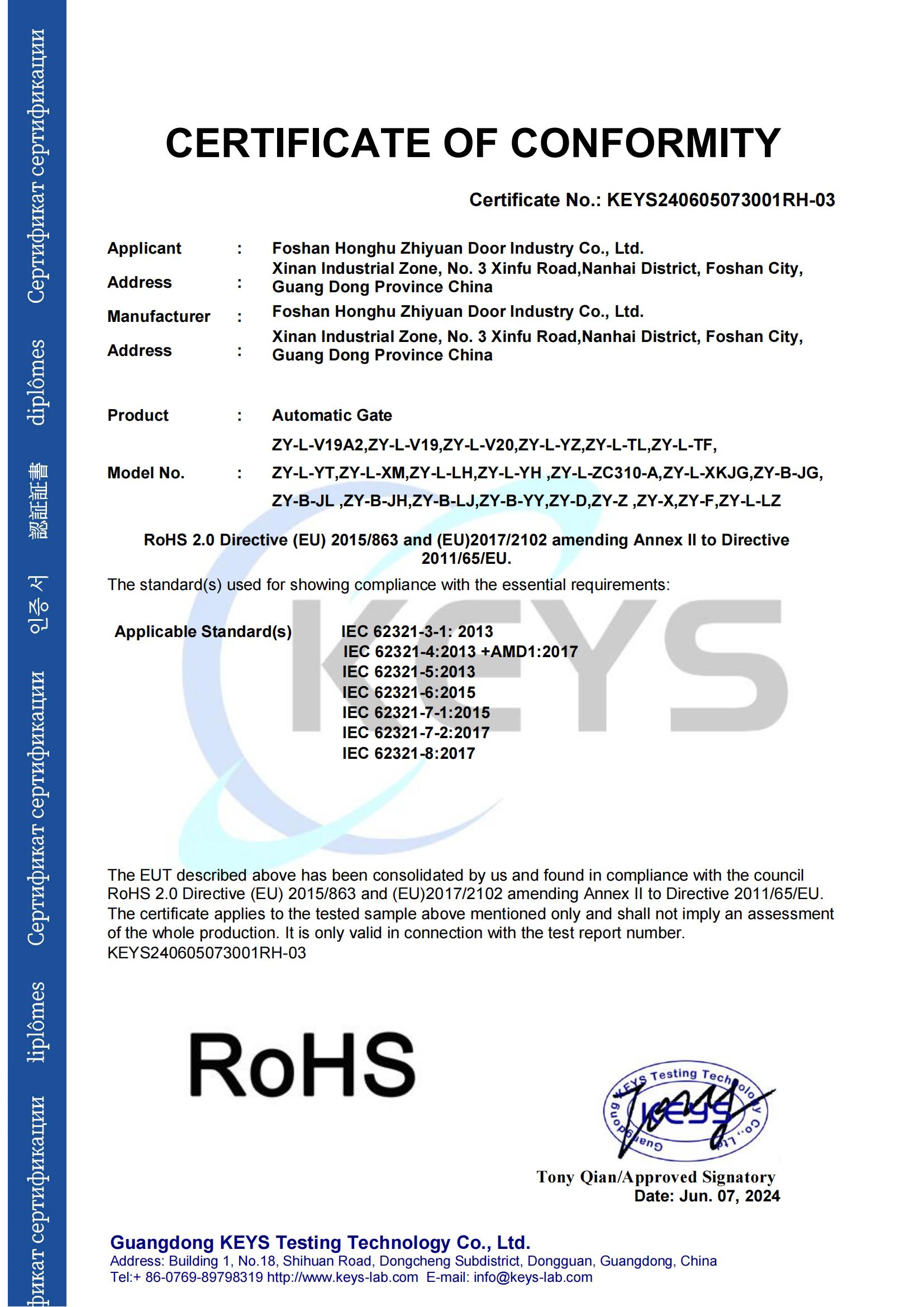 拥有RoHS认证