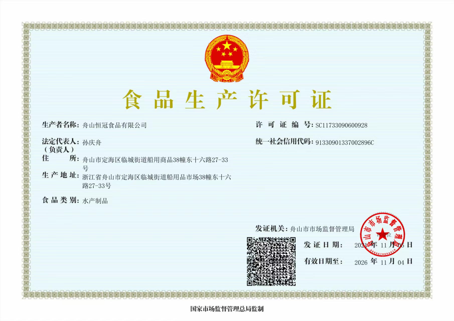 舟山恒冠食品有限公司