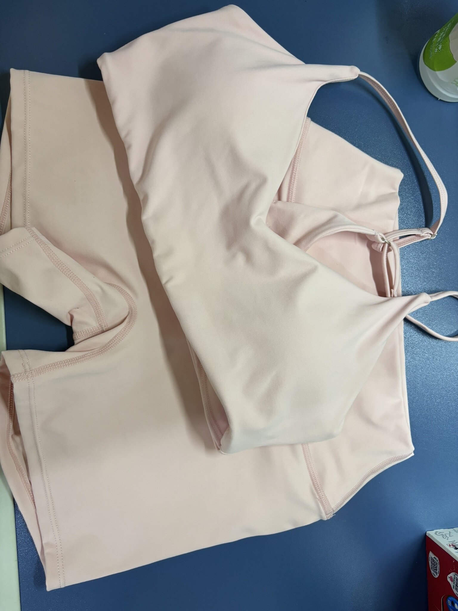 是这样的,实物颜色很深,不知道为什么手机拍出来这么浅,实物颜色有点芭比粉那味,还没有穿去健身,试了一下,挺合身的,我158 98 我体脂高穿着有点肉,不过还是好看的这套衣服,今天穿去健身看看怎么样2026.4.14