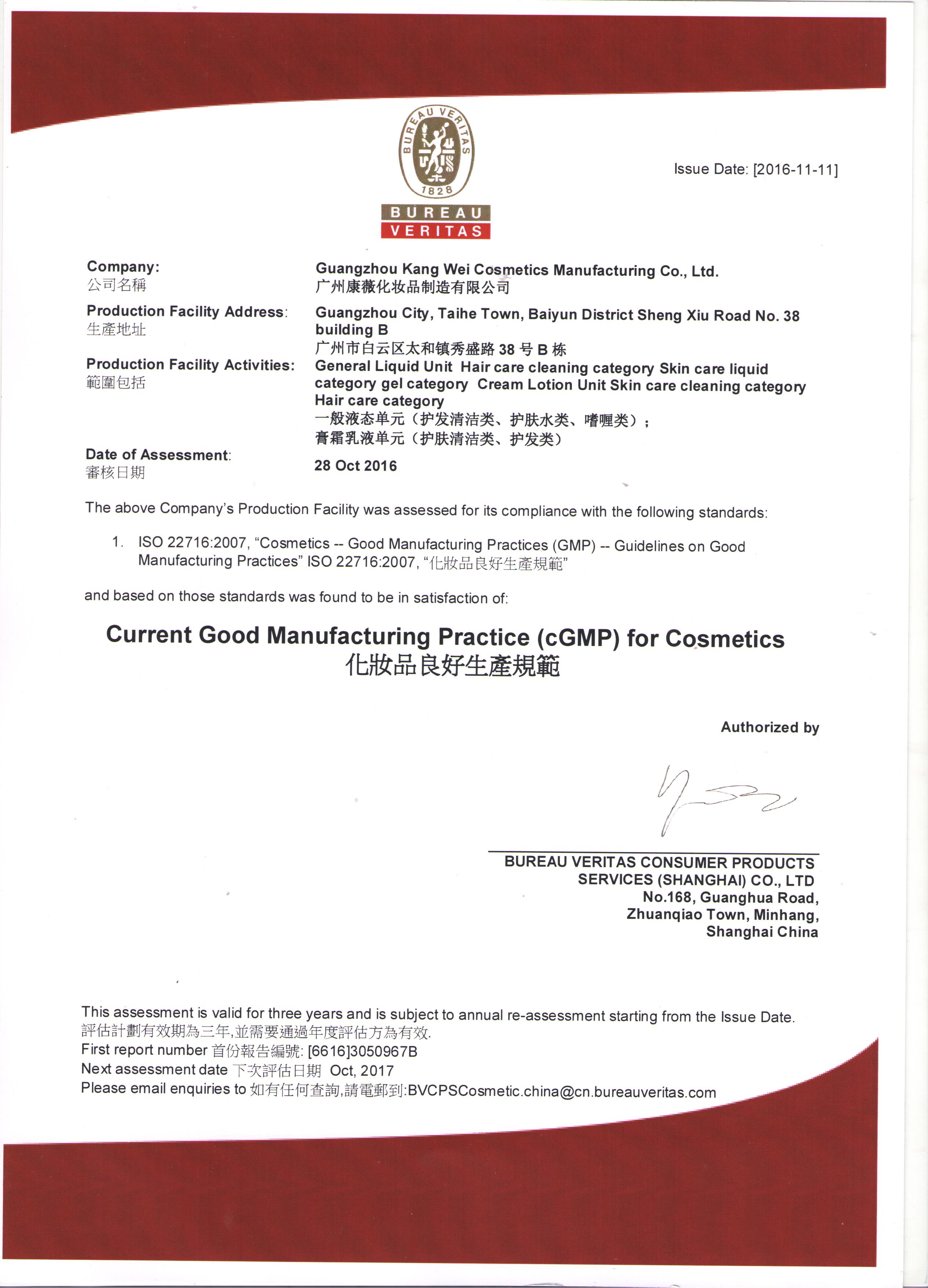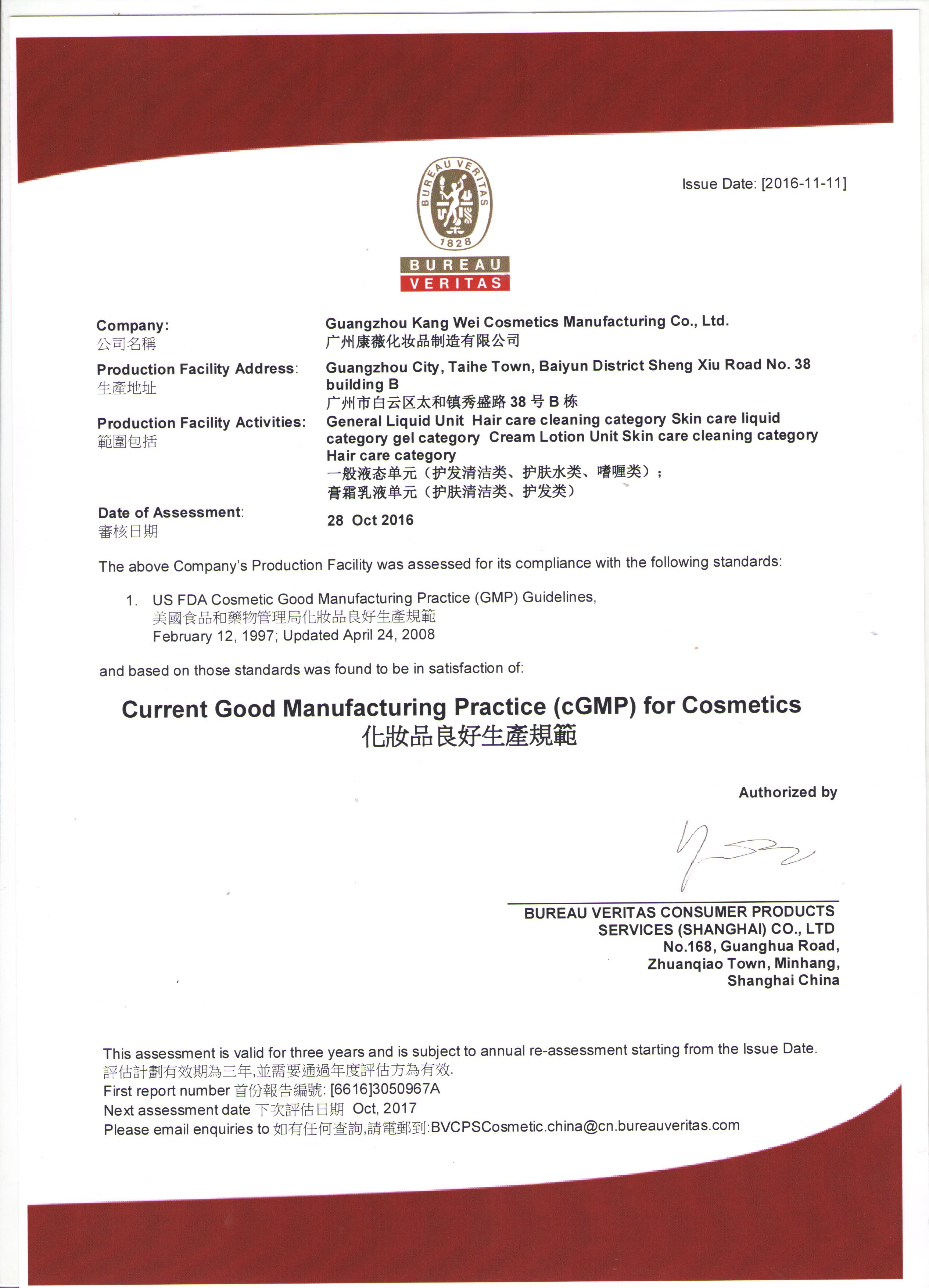 工厂占地面积达28000平方米,10万级净化GMPC无尘标准车间。通过了欧盟ISO22716/美洲GMPC双体认证。车间员工100余名,8条自动化履带生产线,峰值日产能30万,年产能可达1亿。 康薇拥...
