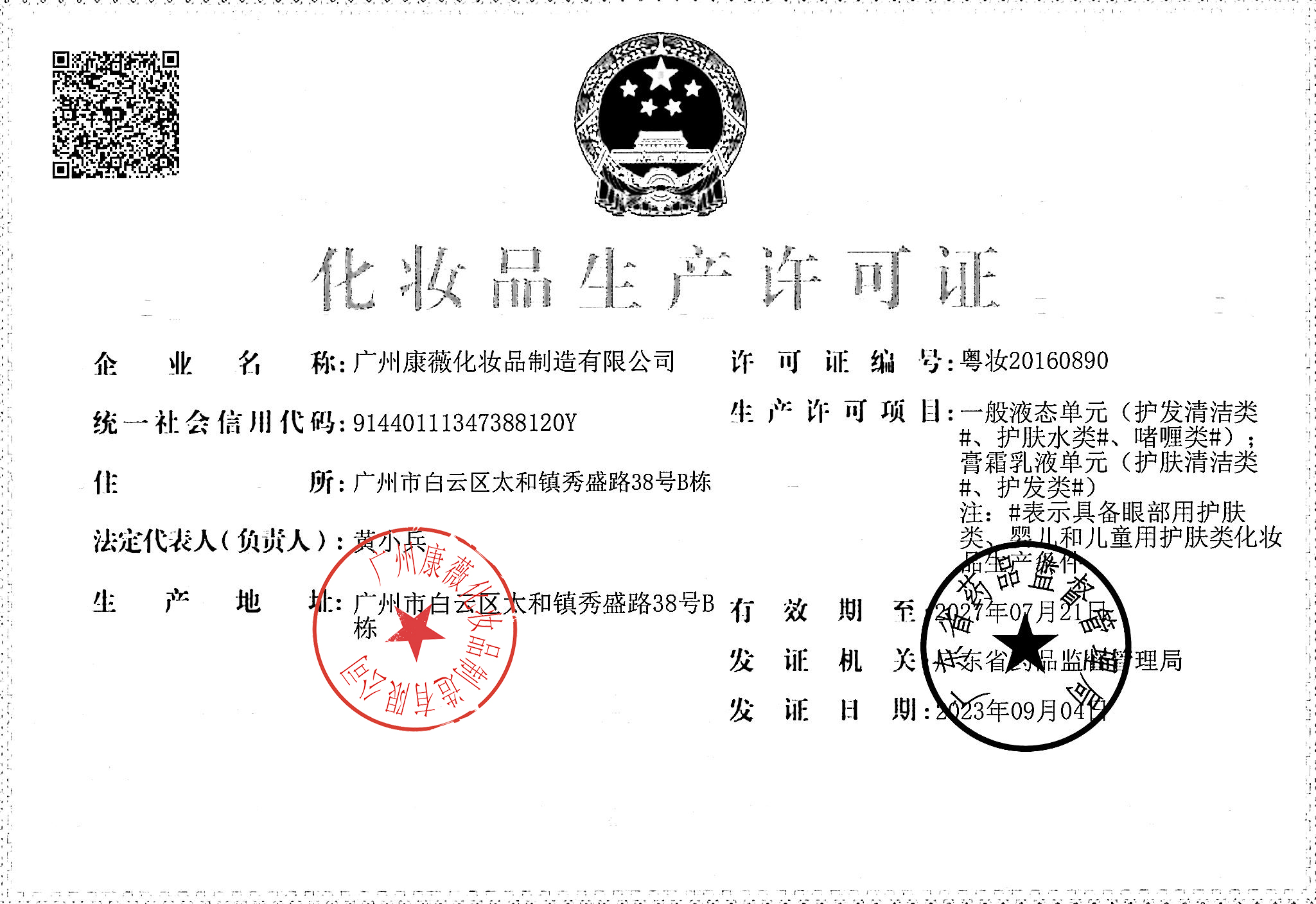 广州康薇化妆品制造有限公司