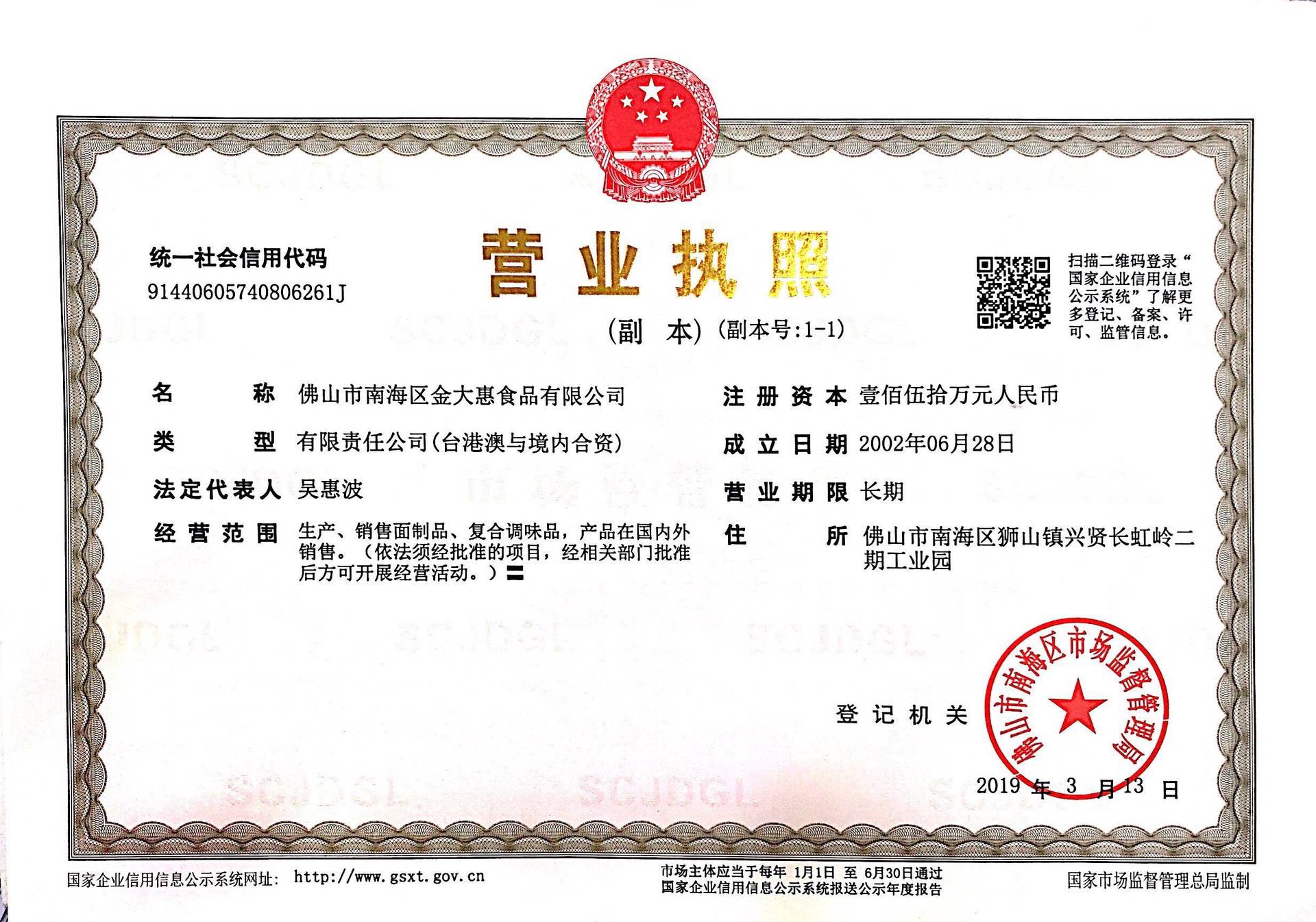 佛山市南海区金大惠食品有限公司