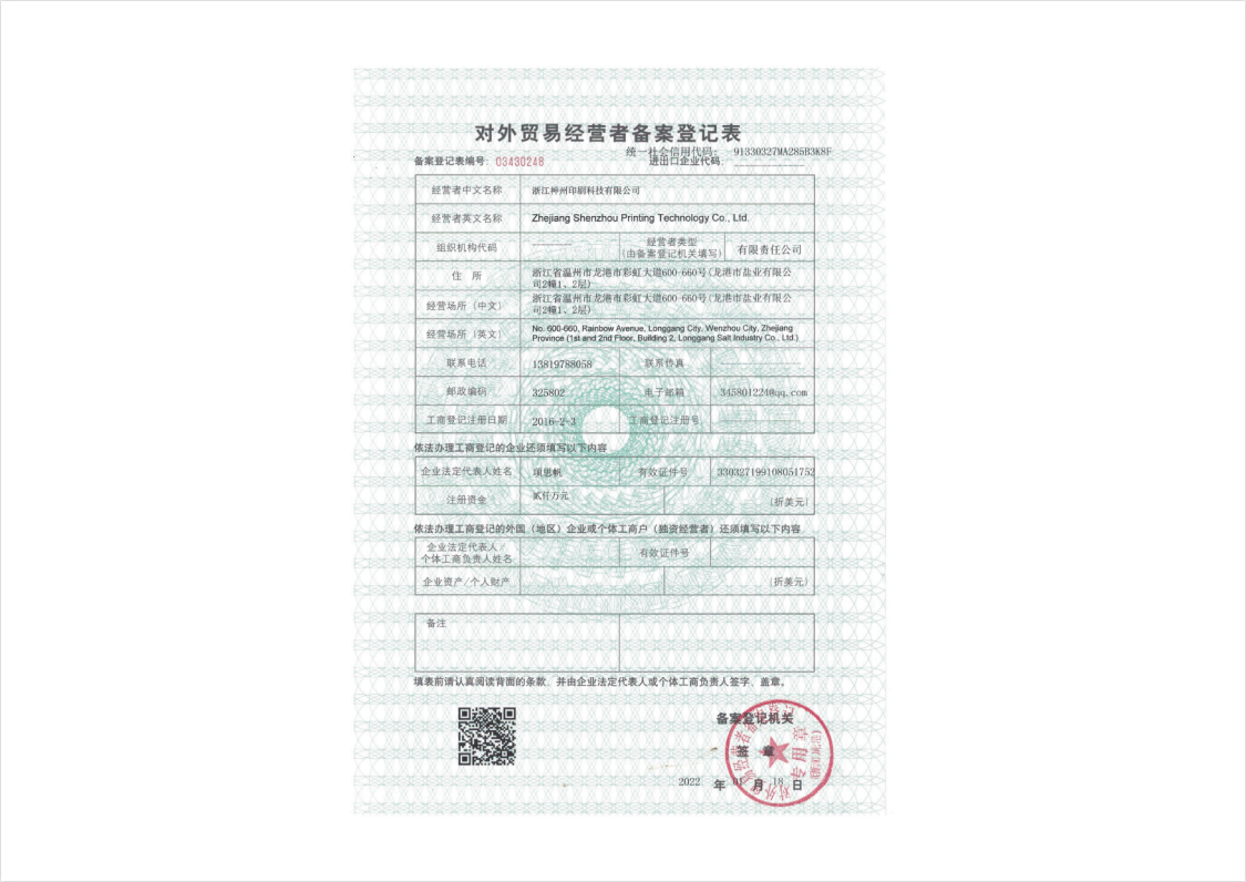 浙江神州印刷科技有限公司坐落在拥有“中国印刷城”、“中国礼品城”等国字号金名片之称的东方海滨城镇——温州•龙港。公司系苍南县百强企业、“重合同•守信用AA”单位、银行信用AA+级企业及中国文体协会理事...