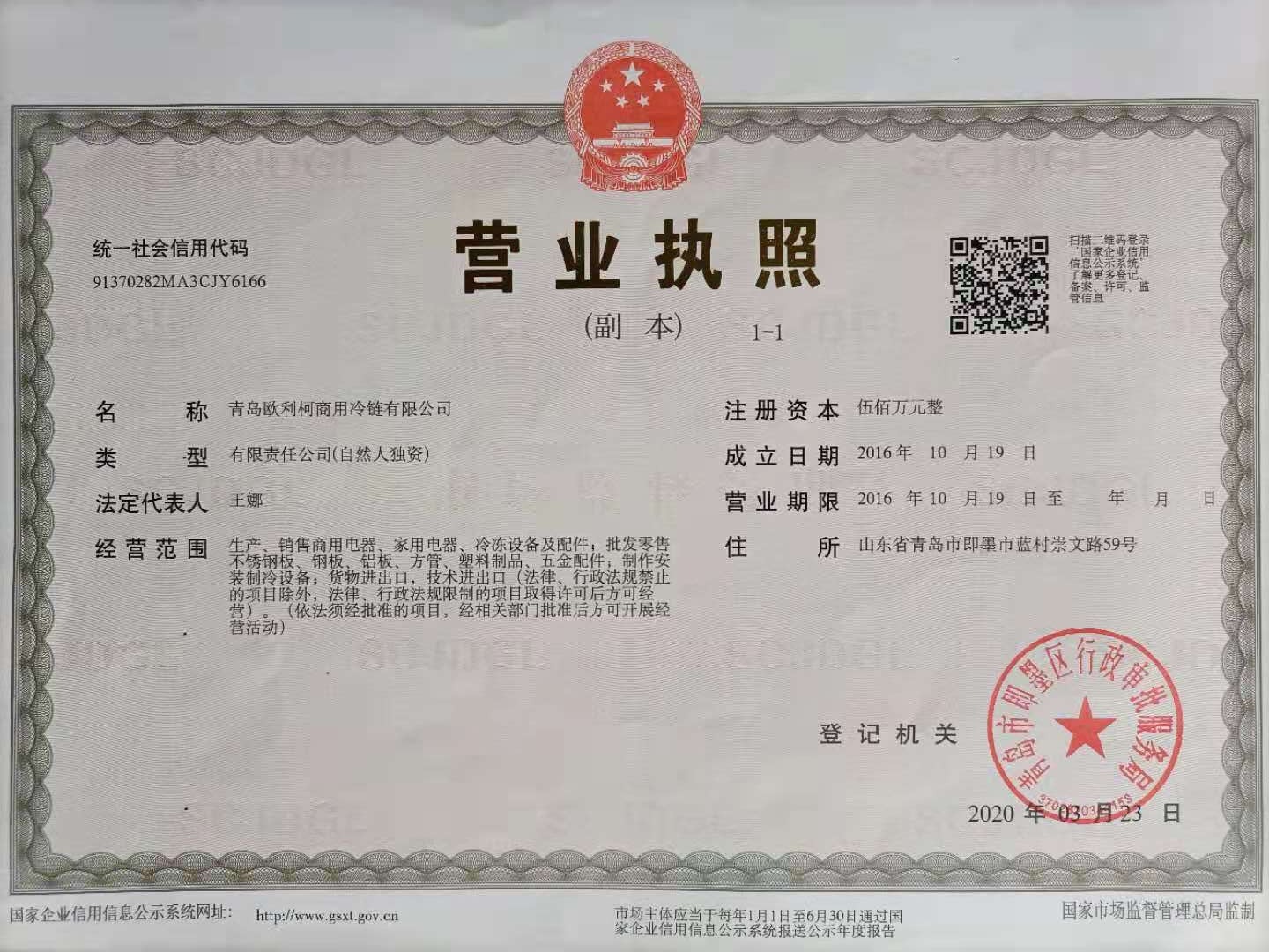 青岛欧利柯商用冷链有限公司