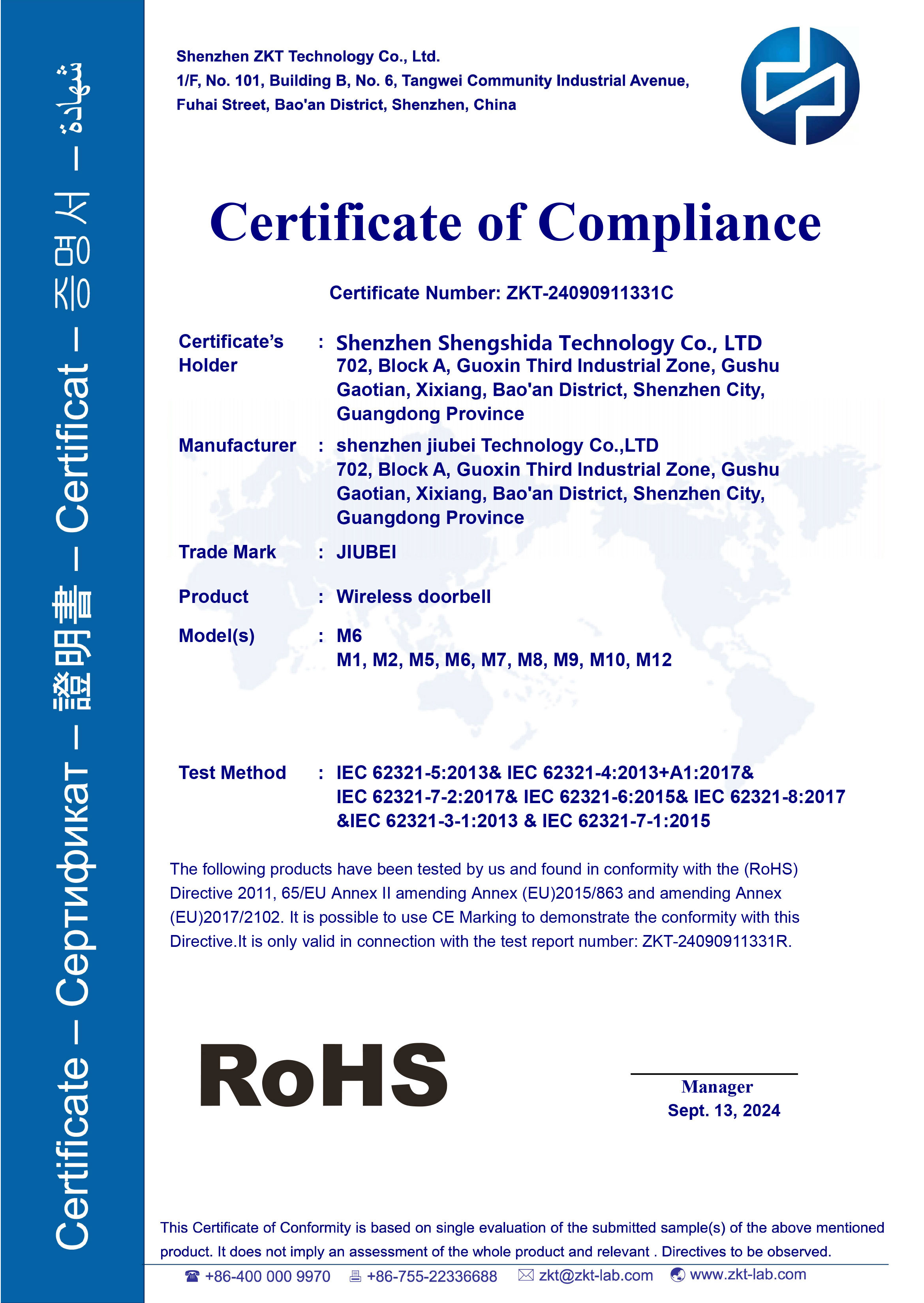拥有RoHS认证