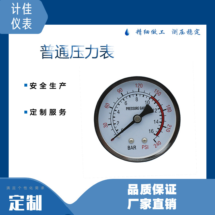 本公司专业生产各种普通压力表,不锈钢压力表,半钢压力表,耐震压力表