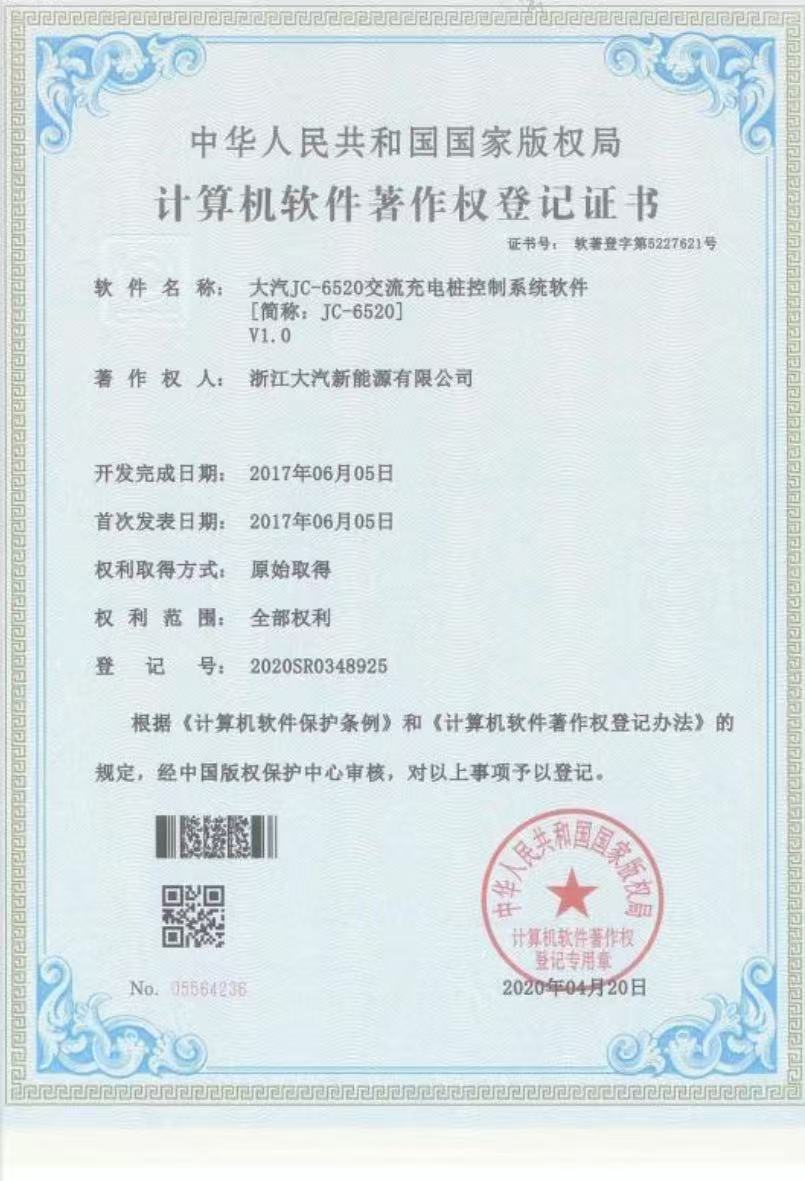 浙江大汽新能源股份有限公司是一家从事新能源技术开发;电动汽车充电设备等新能源技术应用领域的企业,经营范围涵盖汽车充电桩、汽车充电站、配电控制设备、智能电器、清洁能源等系列产品的设计研发、生产制造、安装...