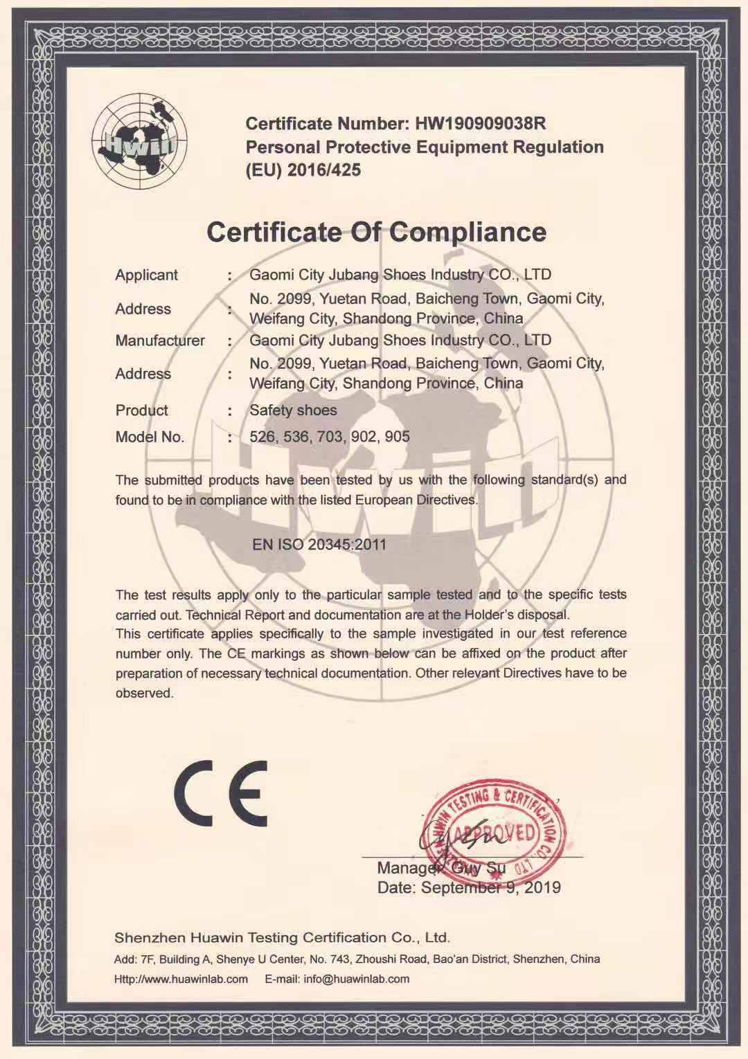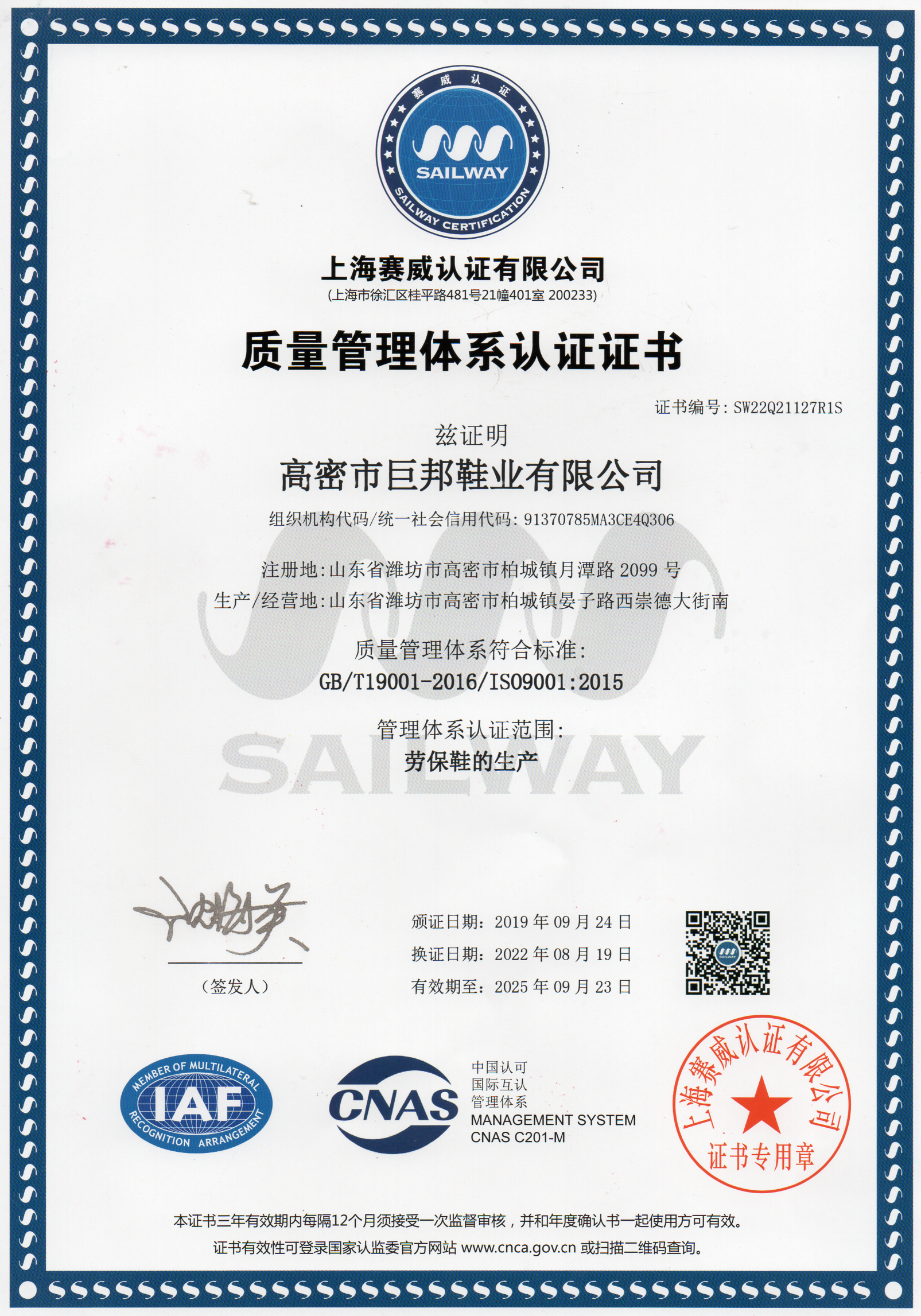 山东省高密市巨邦鞋业有限公司位于全国劳保生产基地山东省高密市柏城工业园,是一家专业从事劳保鞋、工作鞋、防护鞋产品专业生产加工的公司,拥有完整、科学的质量管理体系。高密市巨邦鞋业有限公司自2006年成立...