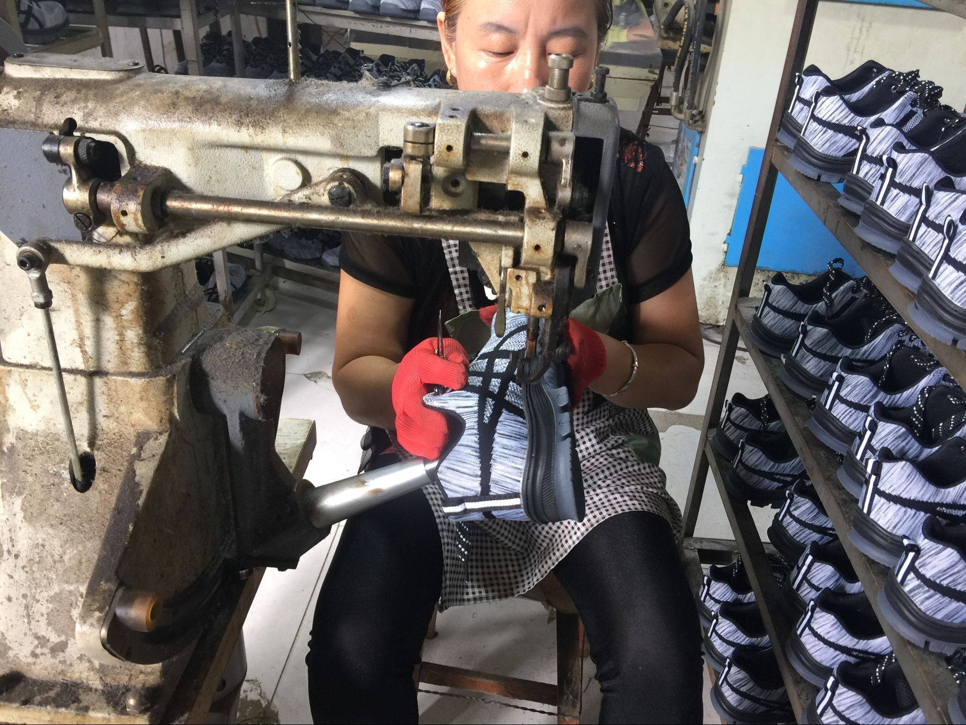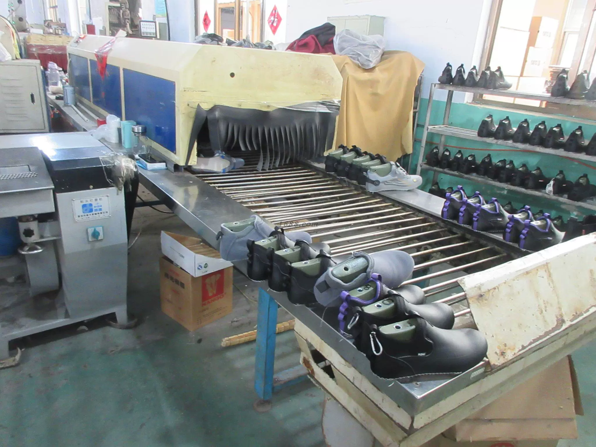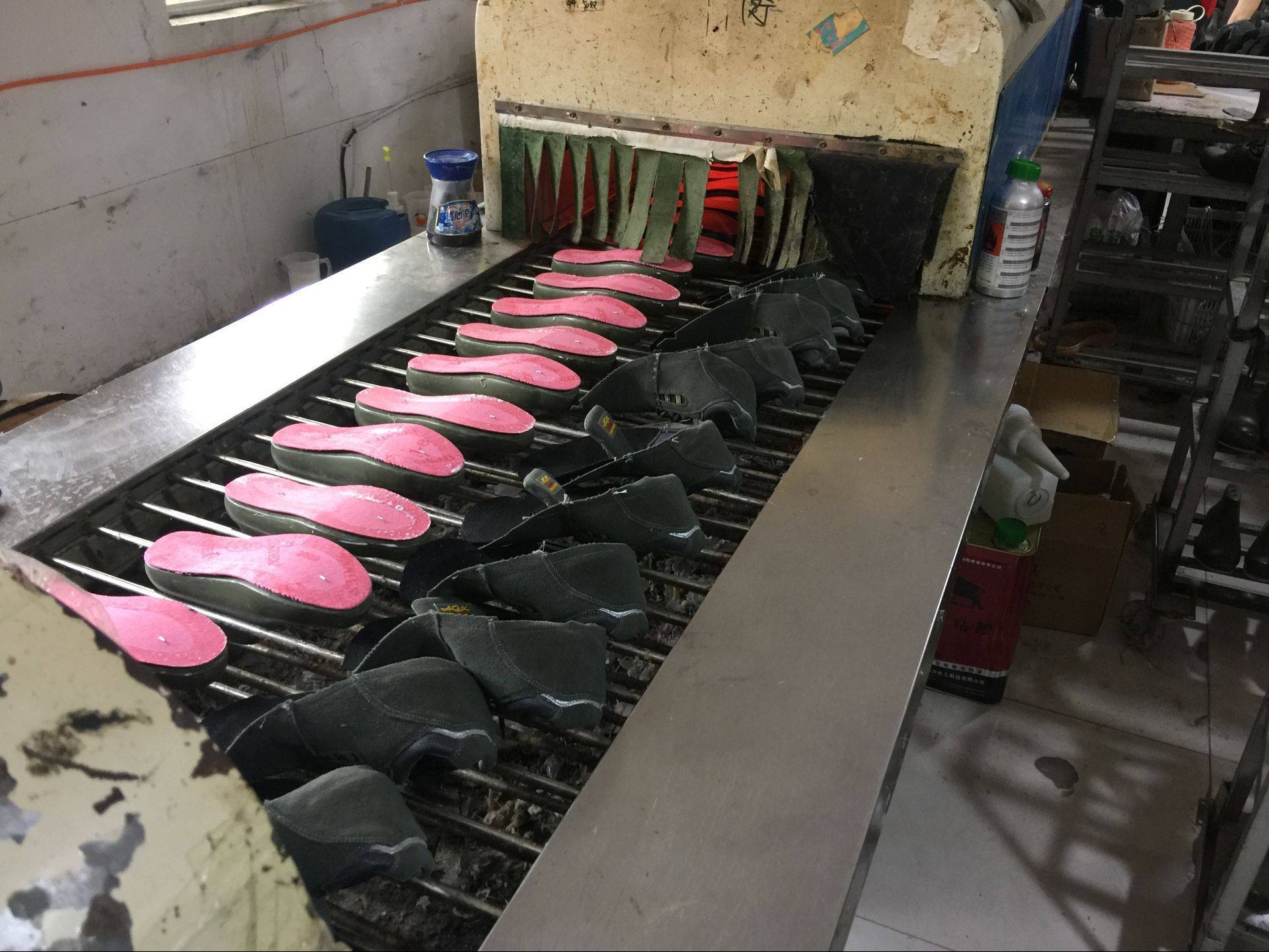 特殊工艺PU注塑成型 冷粘成型 粘主跟 拉帮 固特异 订中底 裱帮 刷帮角、刷楦 粘钢中底 粘钢头条 绷一次楦 绷二次楦 削帮角 添后跟/15MMEVA添心 合大底 外线(前尖透缝) 合麦色中底片 烘干 PVC浸渍 缝制 打板 裁剪 激光切割/封边 高温固化 针车缝纫