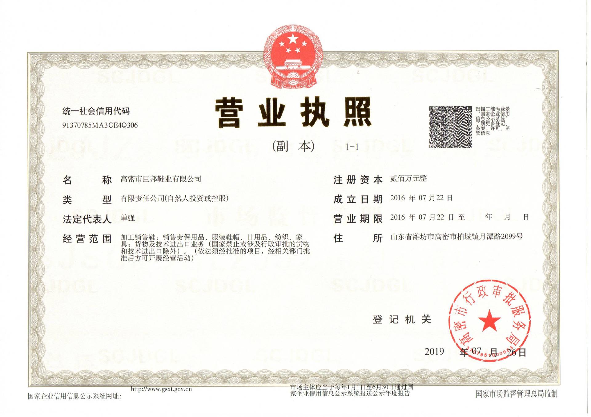 高密市九鼎巨邦劳保用品有限公司