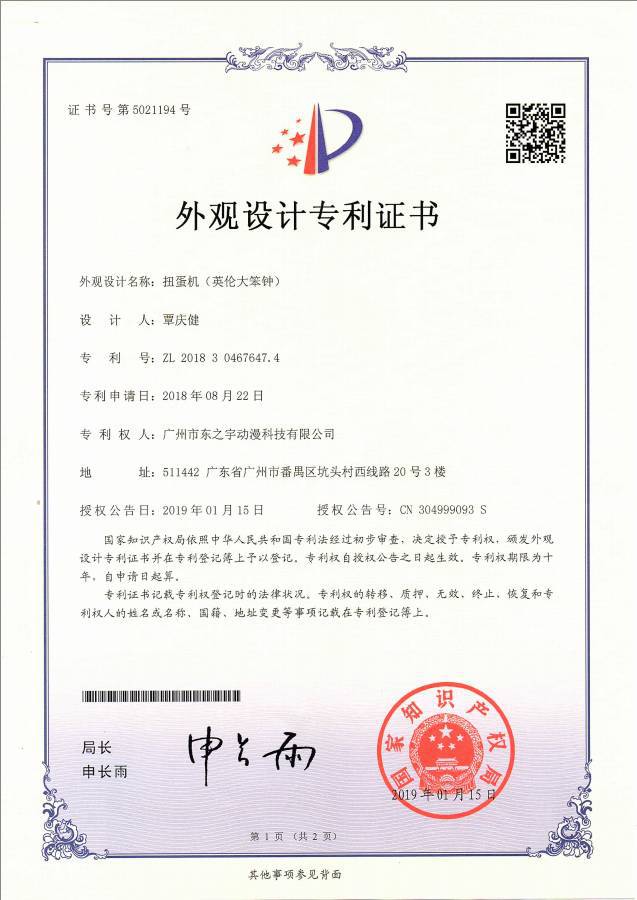 东之宇是一家专注于扭蛋机技术开发和市场运营的创新公司。自主研发电子扭蛋机为市场首创,电子软件技术和设计为全球首发,并获得多项国家专利。公司产品成熟稳定,是中国第一家标准化生产大型扭蛋机的厂家。已经与万...