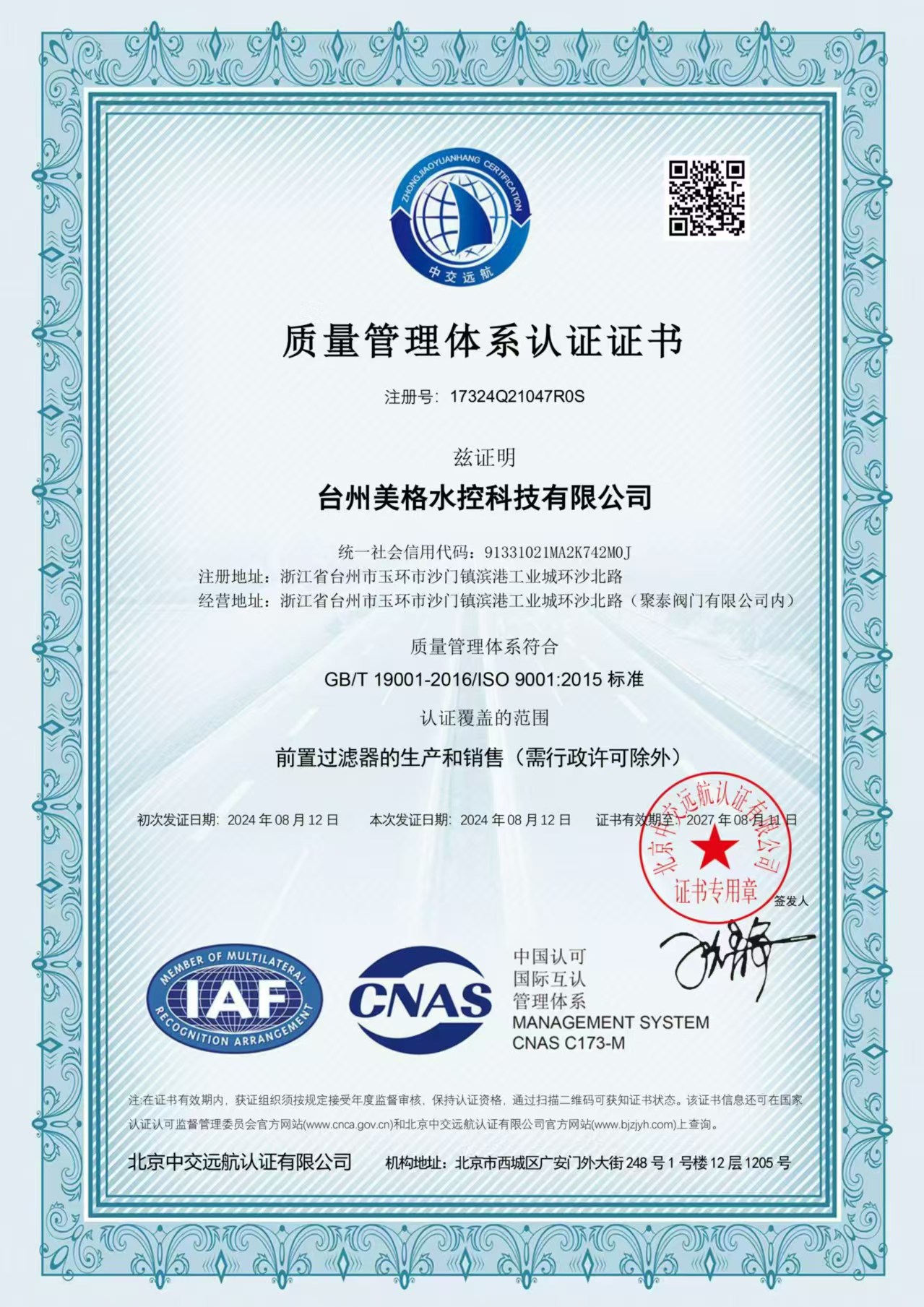 “台州市美格水控科技有限公司”座落在交通便利美丽富饶的“阀门之都”——玉环市沙门滨港工业园区,公司拥有科学、先进的生产设备和检测设备,已通过了ISO9001:2008质量体系认证、CE认证等,是前置过...