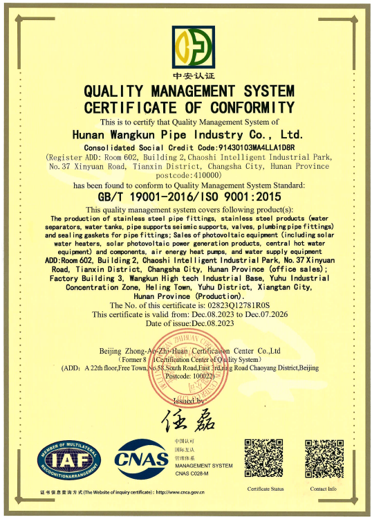 湖南旺坤管业有限公司是一家专业生产薄壁不锈钢管材管件、双 卡压不锈钢家装水管、天然气不锈钢管、食品级不锈钢管材管件、不 锈钢分水器的研发、生产和销售为一体的高新技术企业。 公司成立以来引进德国尖端生产...