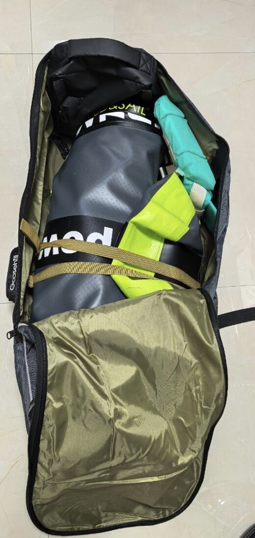 这个奖板包太棒了,面料厚实,还有一层防水内衬。拉链也顺畅。双肩背或者单手提都可以。我的奖板是3.8米的,可以放下奖板+桨板包+救身衣。容量很大。2025.12.14