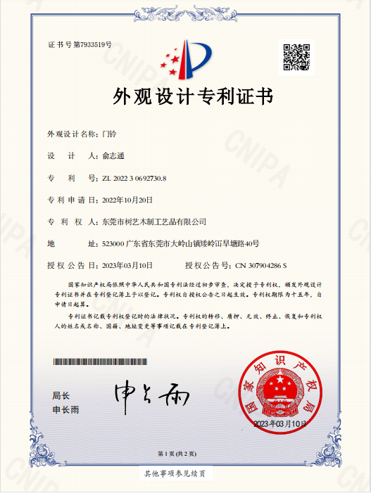 门铃外观专利ZL 2022 3 0692730.8