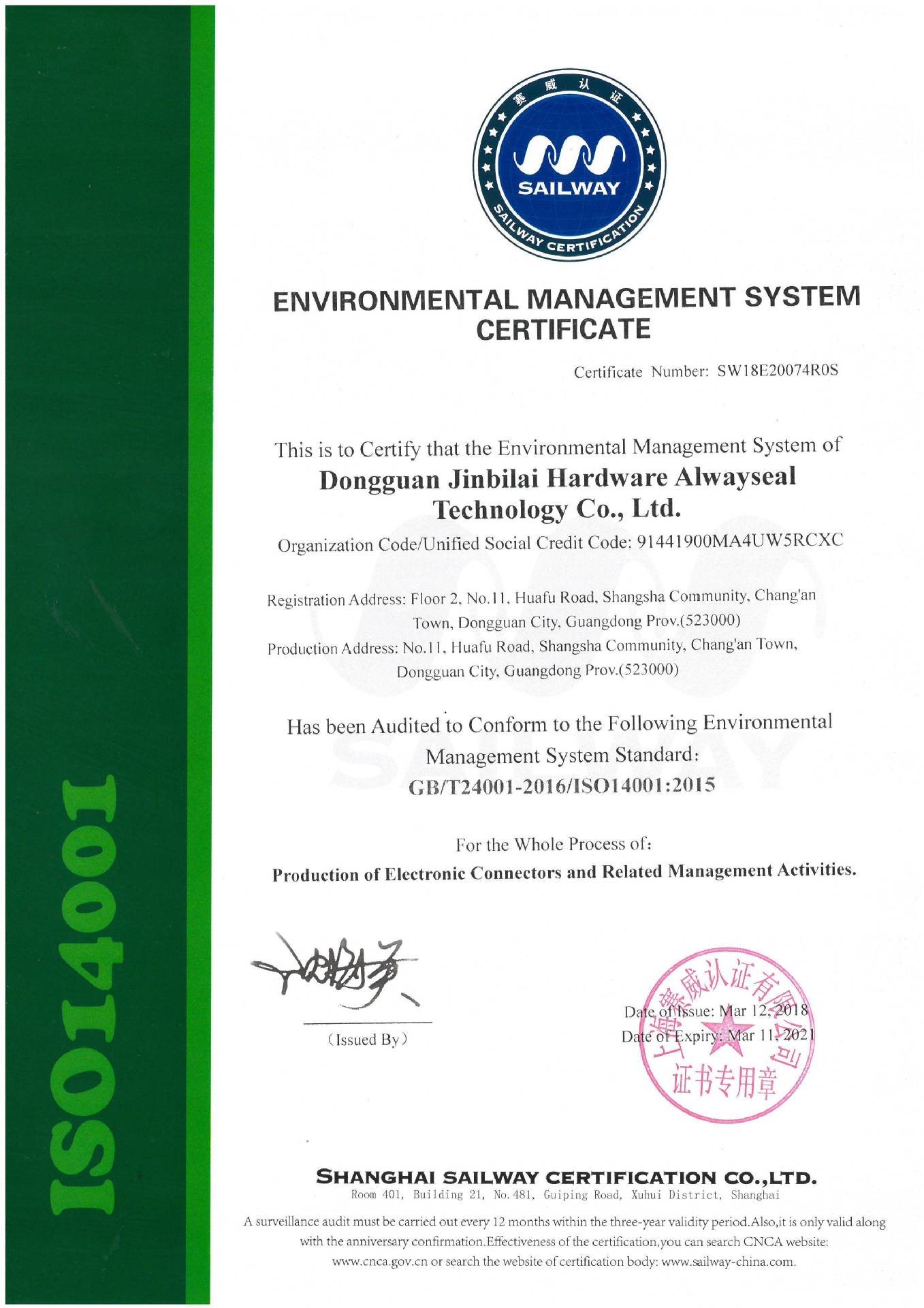 公司占地面积20000平方米,员工350人,拥有一流的研发团队,完善的生产体系及先进的全自动化生产设备。现已通过ISO9001质量管理体系认证,ISO14001环境管理体系认证,IATF16949管理...
