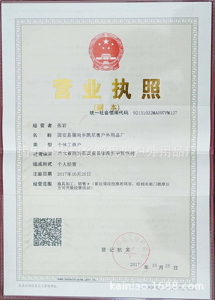 固安县渠沟乡凯尼奥户外用品厂