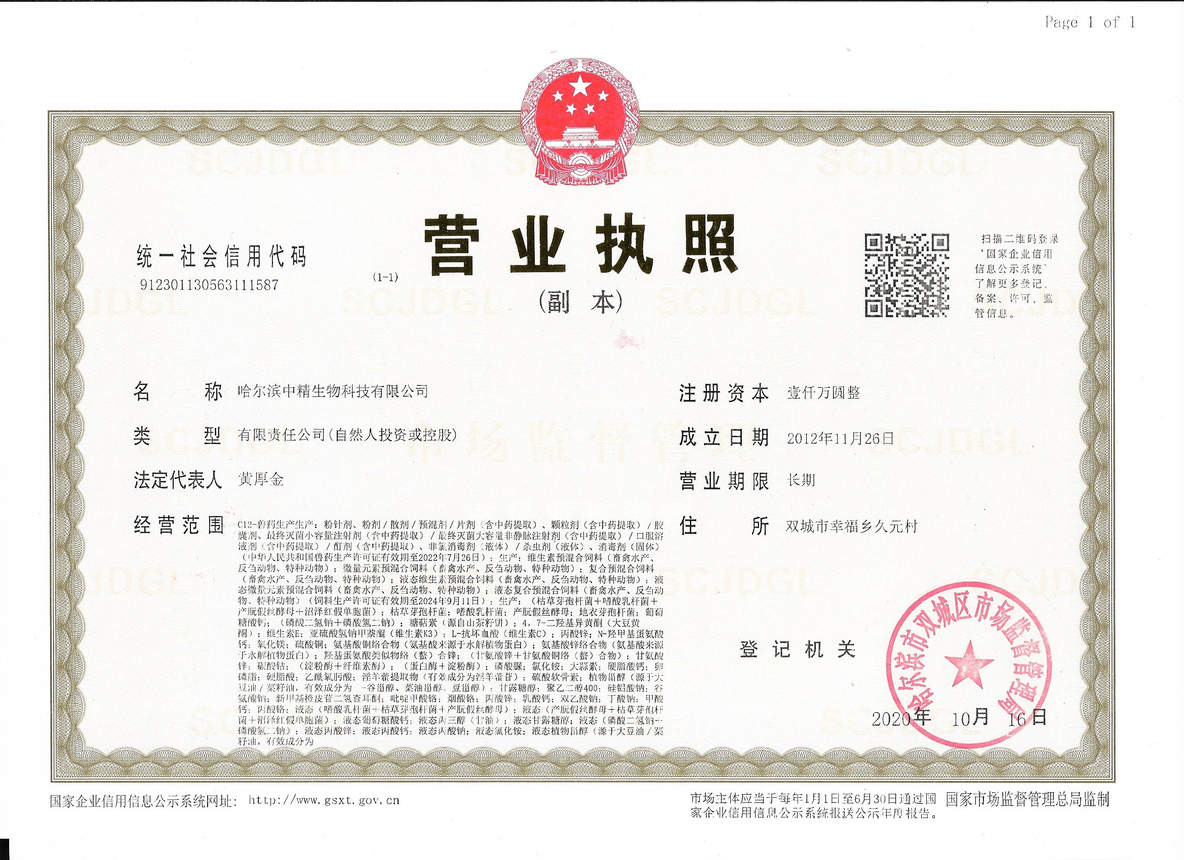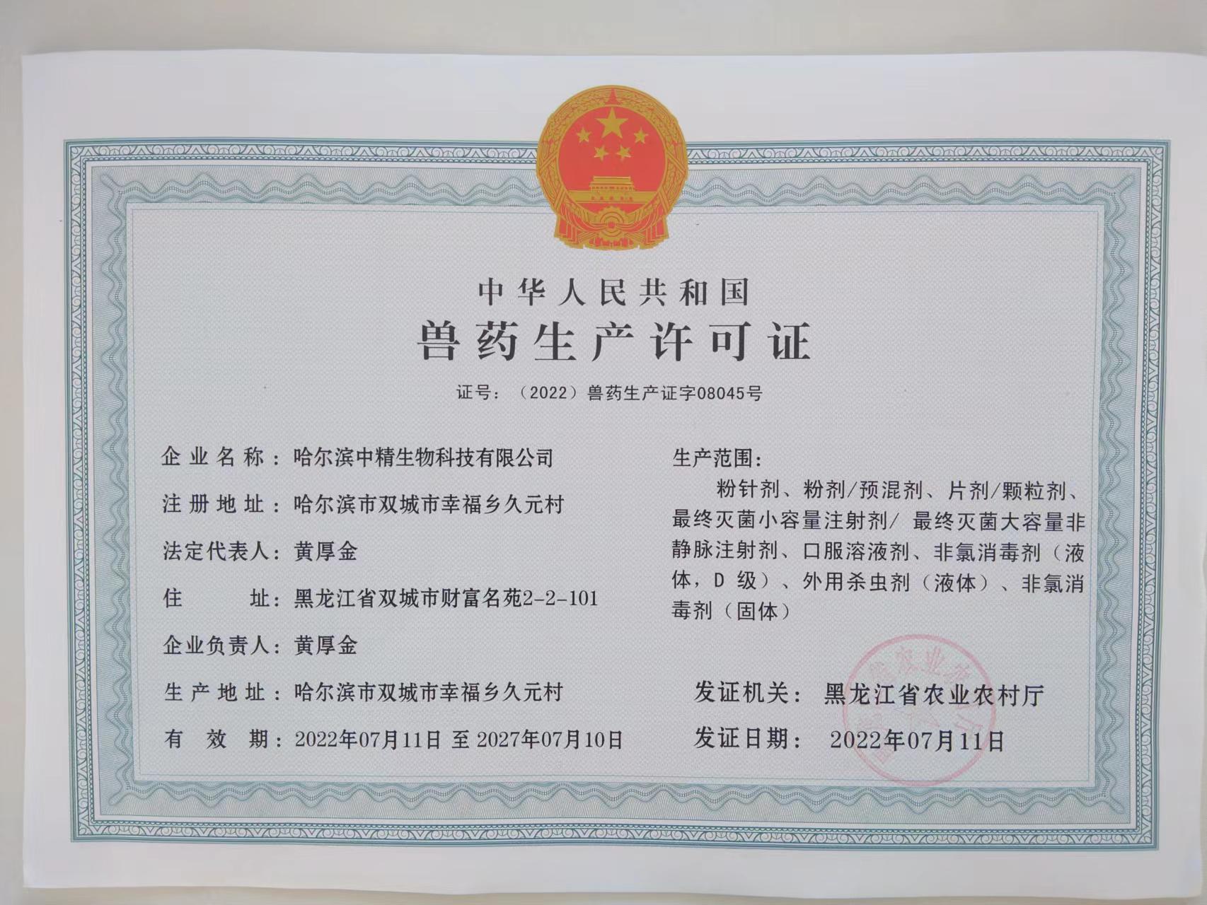 哈尔滨中精生物科技有限公司简介 哈尔滨中精生物科技有限公司地址位于的黑龙江省哈尔滨市双城区幸福乡久元村,前身是黑龙江省畜牧兽医学院的附属校办企业,于2012-11-26 在哈尔滨市双城区工商局,更名注...