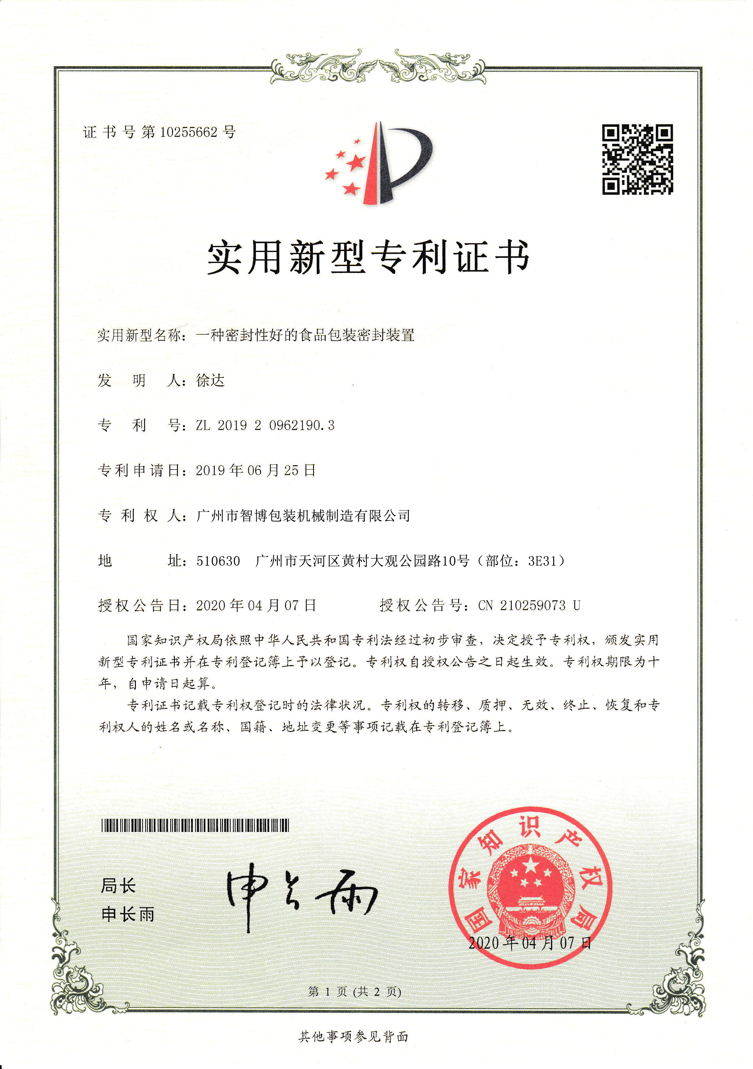 发明专利证书实用新型专利证书2实用新型专利证书