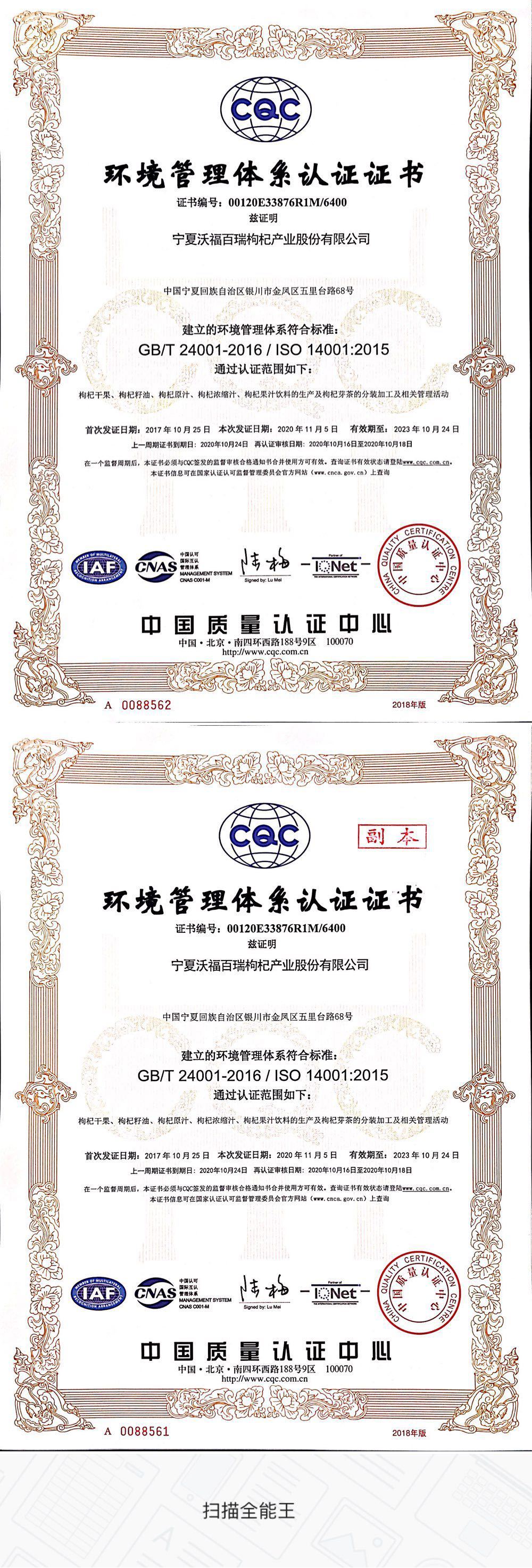 宁夏沃福百瑞枸杞产业股份有限公司成立于2005年,是专业从事有机枸杞种植、加工、销售、红枸杞文化建设为一体的全产业链高科技民营企业。公司先后获得“国家农业产业化重点龙头企业”、“宁夏农业高新技术企业”...