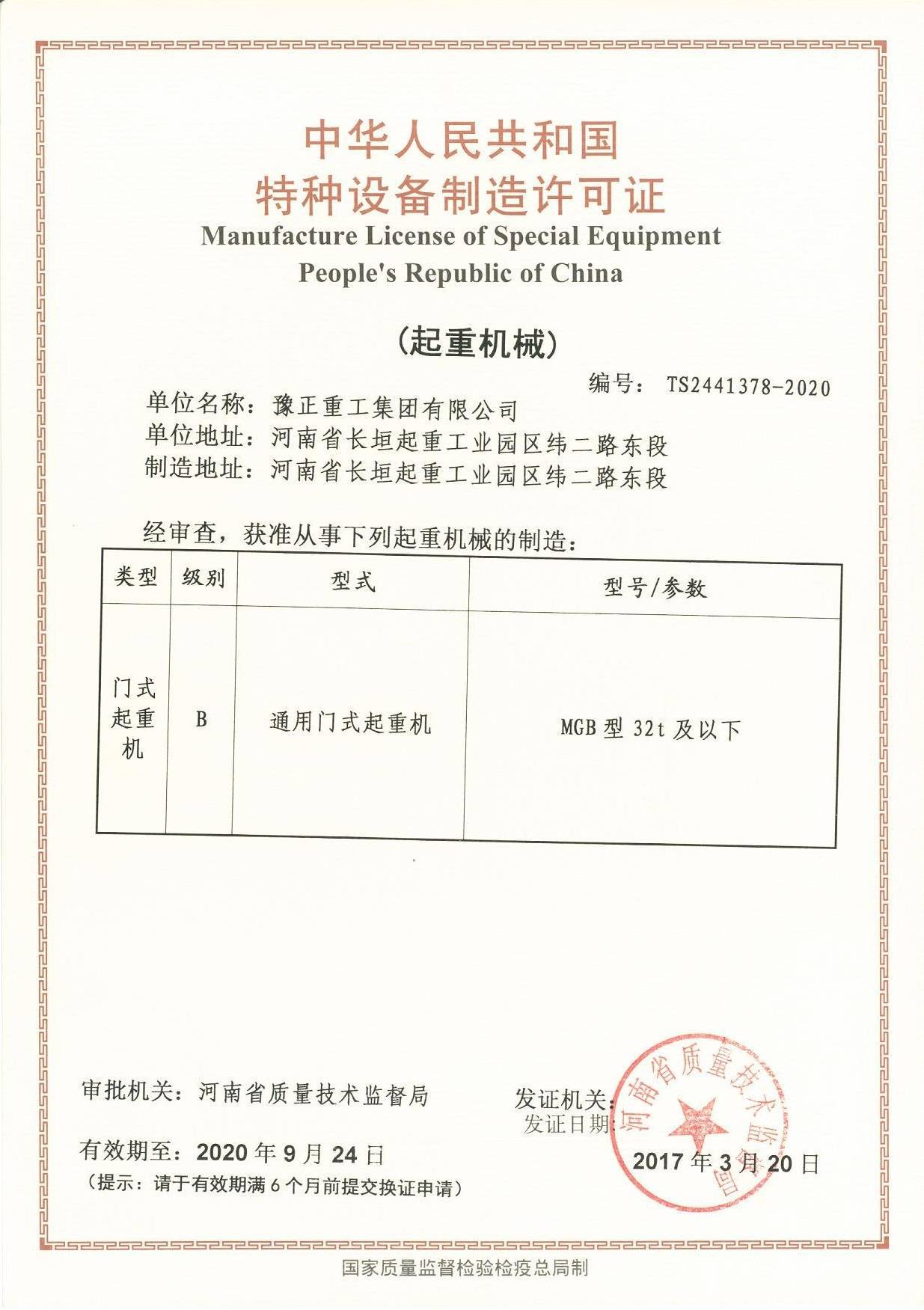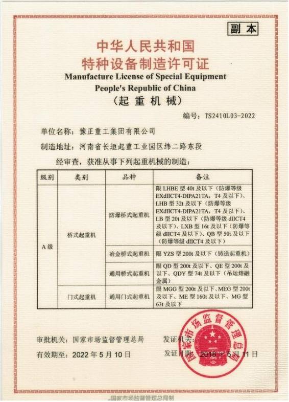 豫正重工集团有限公司是桥式起重机、门式起重机、悬臂起重机、路桥起重机、减速机、电机、电动葫芦、防爆电动葫芦、升降平台、电动平车、抓斗、卷扬机、平衡吊、起重机械配件等产品专业生产加工的公司,拥有完整、科...