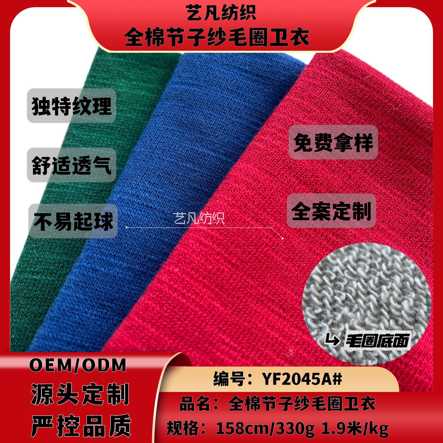 佛山艺凡纺织科技有限公司,位于“中国针织名镇”——广东省佛山市张槎镇,拥有一支20多年以专业定制技术服务的核心团队,专注环保时尚针织面料,集生产、研发于一体的现代化纺织企业。可承接品牌来样定制,提供环...