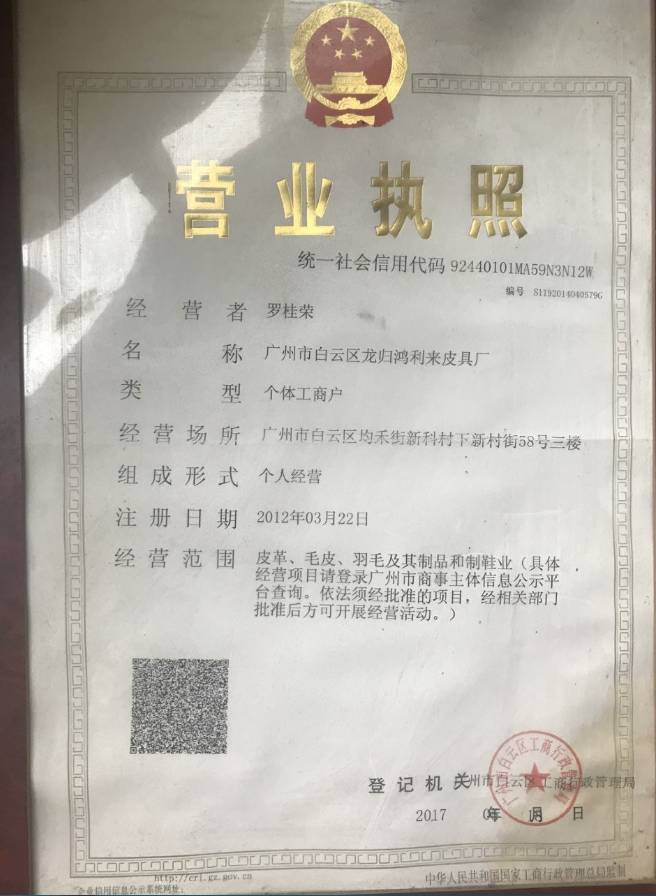广州市白云区龙归鸿利来皮具厂