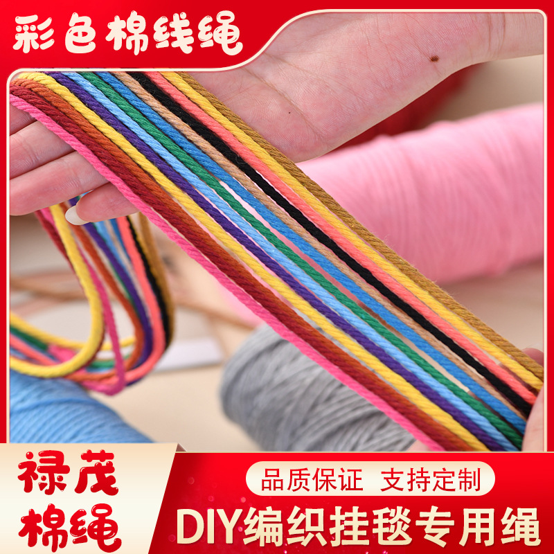 本厂面积6000平方.工人50名.主要生产纯棉绳.涤棉.彩色.棉绳.规格为.1到30毫米.加工以及制作各种类型挂毯.网兜..可定做多种规格.尺寸可定做..本厂有5年的跨商合作经验.和多家外贸公司的合作...